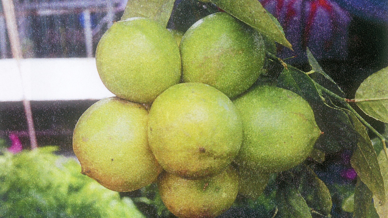 ผล รูปกลมรี ปลายผลแหลมเป็นจุก ติดผลเป็นพวงแน่นไม่ต่ำกว่า 8–10 ผลต่อพวง ผลโตเต็มที่เกือบเท่าผลส้มเขียวหวานทั่วไป จะหย่อนกว่าเพียงเล็กน้อยเท่านั้น เปลือกผลบางและเกลี้ยง เนื้อในฉ่ำน้ำ ให้น้ำเยอะ มีเมล็ดหลายเมล็ด ใน 1 ผลสามารถผ่าบีบหรือคั้นเอาน้ำได้เกินครึ่งถ้วยกาแฟ น้ำรสชาติเปรี้ยวจัดแต่ไม่มีกลิ่นหอม มีดอกและติดผลดกตลอดทั้งปี ขยายพันธุ์ด้วยเมล็ด ตอนกิ่ง ทาบกิ่ง และเสียบยอด ปลูกได้ใน