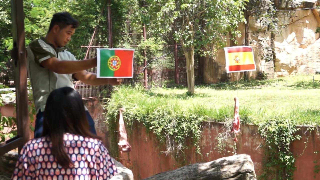 ด้านส่วนจัดแสดงสัตว์กินเนื้อ ภายในสวนสัตว์ จ.ขอนแก่น ได้ให้ เจ้าบอย สิงโตขาว ชื่อดัง เป็นผู้ทำการทายผลการแข่งขันระหว่าง ทีมชาติโปรตุเกส กับ ทีมชาติสเปน ที่จะแข่งขันเป็นคู่ที่ 2 ของกลุ่มบี โดยได้นำธงชาติของทั้ง 2 ประเทศ ผูกติดกับเนื้อหมู ก่อนแขวนบนลวดสลิง และใช้ระบบหมุนไปยังพื้นที่ของการจัดแสดง ก่อนที่ เจ้าบอย จะมาตะปบเลือกชื่อเนื้อที่ถูกติดกับธงชาติสเปน