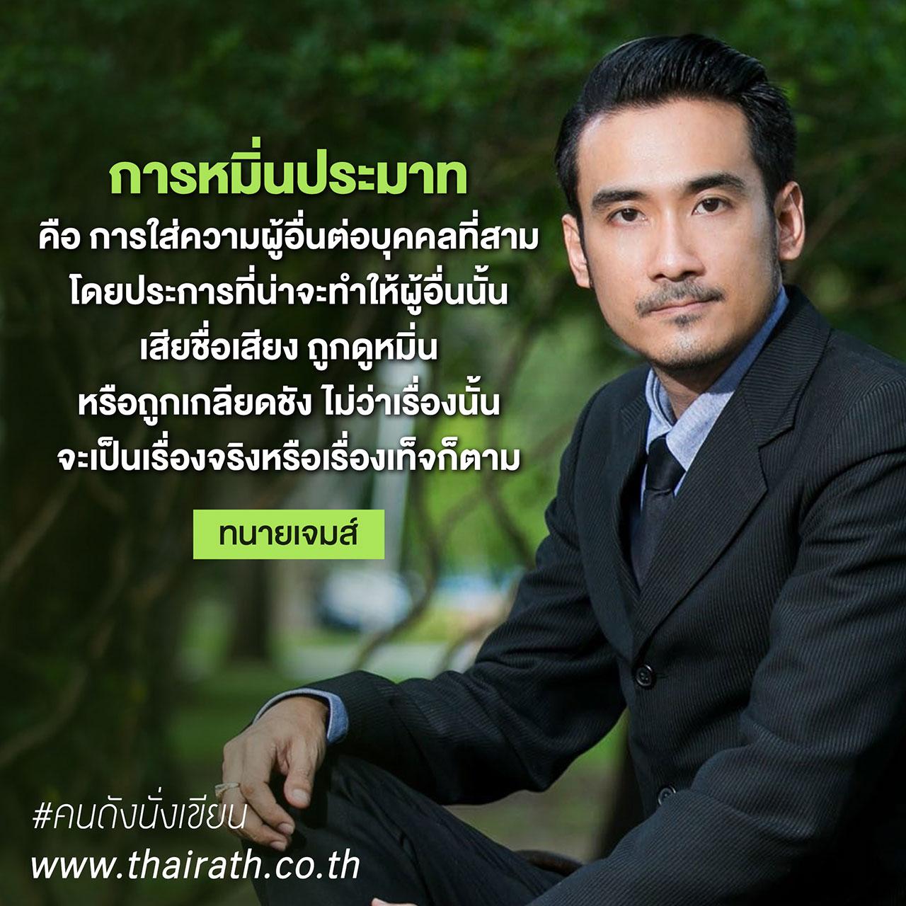 สำหรับผู้ที่มีคำถามข้อสงสัยเกี่ยวกับเรื่องกฎหมายและต้องการความช่วยเหลือ หรือมีเรื่องราวดีๆ อยากแบ่งปันประสบการณ์ เมลล์มาหาผมได้ที่ “คุยกับคนดัง” talktoceleb@trendvg3.com หรือ Facebook: ทนายเจมส์ LK ได้เลย
