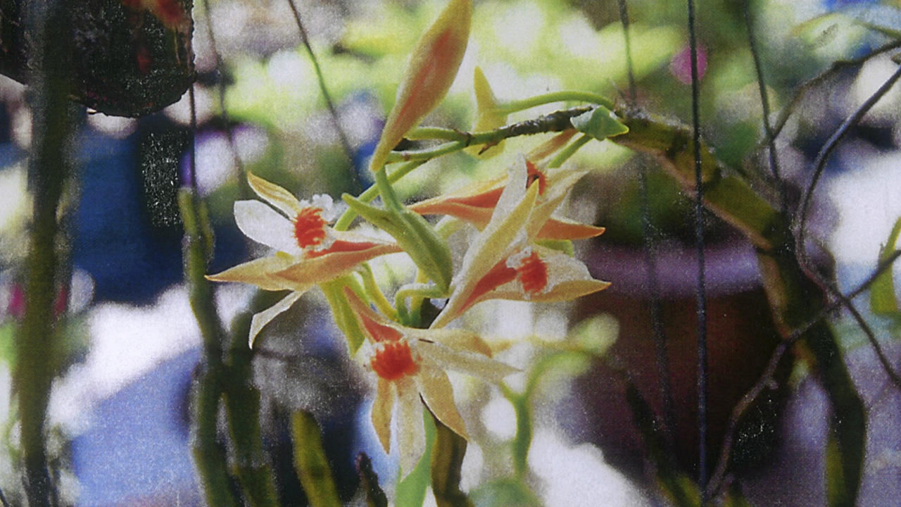 ดอก ออกเป็นดอกเดี่ยวๆหรือเป็นช่อ 1-3 ดอกที่ข้อลำต้นใกล้ปลายยอด กลีบเลี้ยงและกลีบดอกเป็นรูปรีแกมรูปขอบขนาน ไม่เป็นรูปสามเหลี่ยมเหมือนกลีบดอกของเอื้องเงินแสดไทยชัดเจน ปลายกลีบดอก “เอื้องเงินแสดลาว” จะแหลม มีสีขาวหรือมีสีส้มจางๆ เจือปนทั่วทั้งกลีบ กลีบปากมีตุ่มกระจายทั่วและตัวกลีบปากจะม้วนลง ไม่ยื่นยาวออกไปทางด้านหน้าเช่นกลีบปากของเอื้องเงินแสดไทย เป็นสีแดงอมสีส้มทั้งกลีบปาก ดูคล้ายกับกลีบปากของกล้วยไม้ชื่อดอนมาลีมาก ดอกบานเต็มที่กว้างประมาณ 4.5 ซม. เวลามีดอกจะสวยงามสดใสน่ารักมาก ดอกออกระหว่างเดือนมีนาคมต่อเนื่องไปจนถึงเดือนพฤษภาคมทุกปี ดอกจะบานได้นานเป็นอาทิตย์ ขยายพันธุ์ด้วยการแยกต้น ปัจจุบันเป็นกล้วยไม้หายากมากครับ.