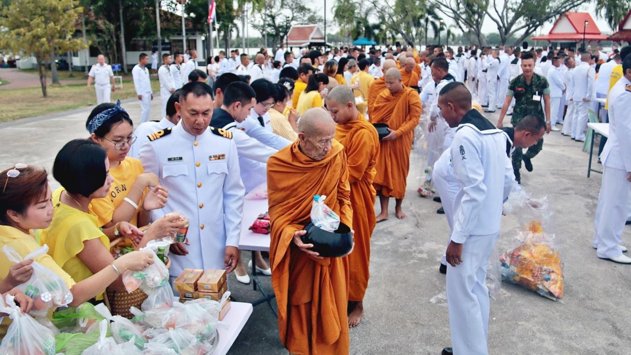 พลเรือโท สุกิตติ เสงี่ยมพงษ์ กล่าวว่า เนื่องในโอกาสเฉลิมพระชนมพรรษา 66 พรรษา สมเด็จพระเจ้าอยู่หัวมหาวชิราลงกรณ บดินทรเทพยวรางกูร รัชกาลที่ 10 ได้เวียนมาบรรจบ เหล่าข้าราชการ ทหาร และครอบครัว ต่างสำนึกในพระมหากรุณาธิคุณ ที่พระองค์ทรงมีต่อพสกนิกรชาวไทย และกองทัพเรือ อย่างหาที่เปรียบมิได้ จึงได้จัดกิจกรรมเฉลิมพระเกียรติ ตักบาตรข้าวสารอาหารแห้ง พระสงฆ์ เพื่อน้อมเกล้าถวายเป็นพระราชกุศล แด่พระองค์ท่าน