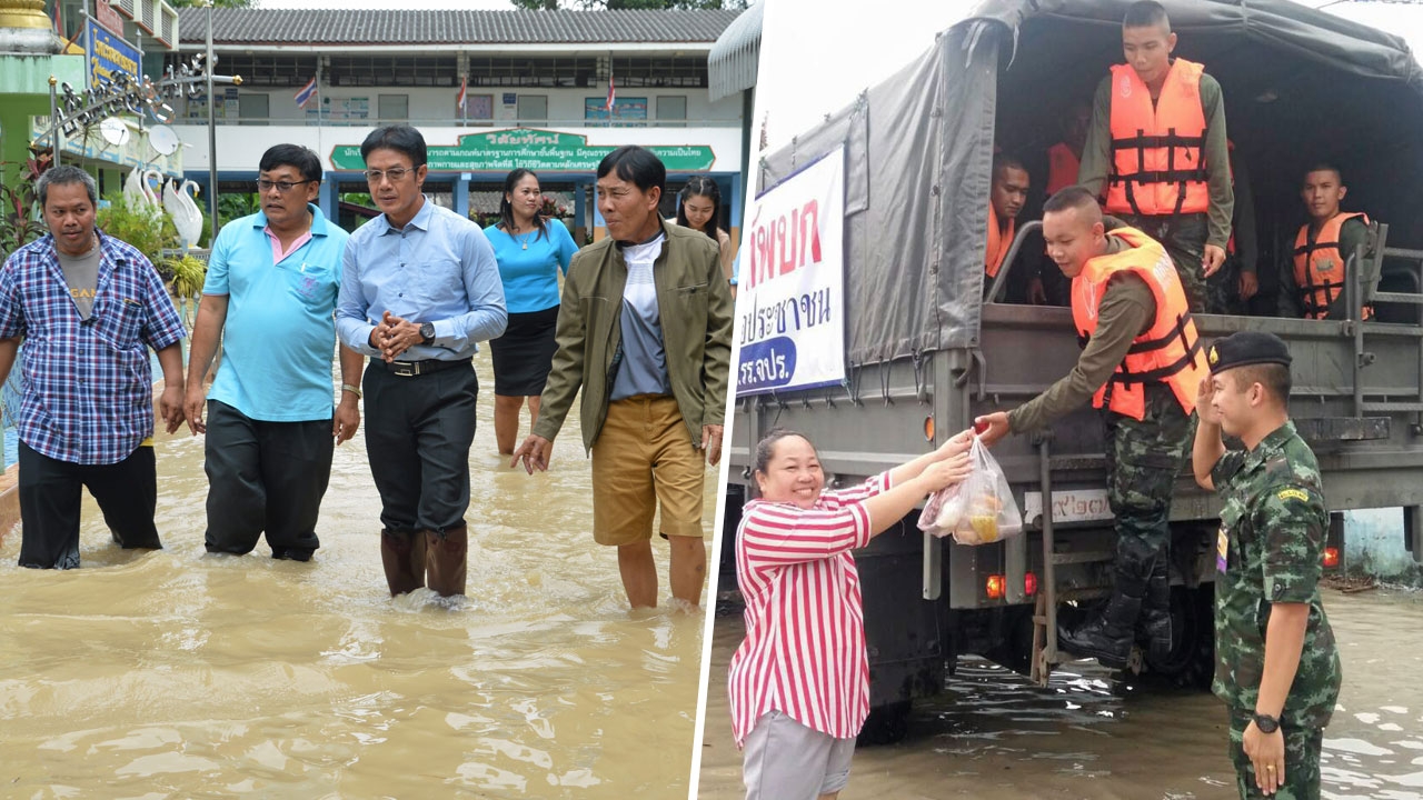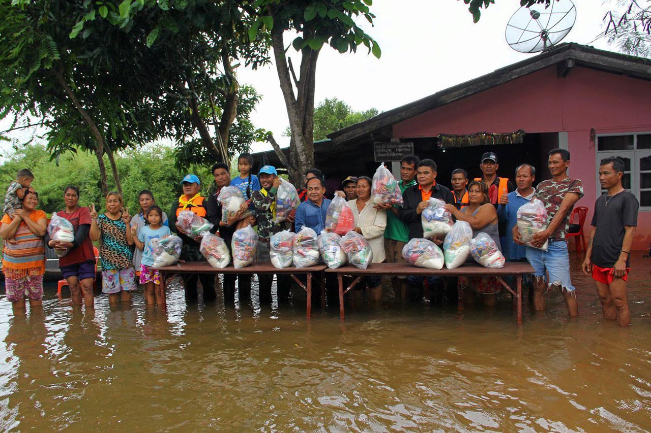 ขณะเดียวกัน ทหาร กกล.รส.จ.บึงกาฬ พร้อมฝ่ายปกครอง นำข้าวสารอาหารแห้งไปแจกจ่ายให้กับประชาชนในพื้นที่บ้านท่าโพธิ์ หมู่ 6 ต.บึงกาฬ อ.เมืองบึงกาฬ เพื่อบรรเทาความเดือดร้อน หลังประสบภัยน้ำท่วมนานกว่า 1 สัปดาห์ นอกจากนี้นำเรือท้องแบนช่วยเหลือรับ-ส่ง นักเรียนกว่า 50 คน พื้นที่บ้านเทพมีชัย หมู่ 7 ต.หนองเดิ่น อ.บุ่งคล้า หลังน้ำท่วมทางเข้าหมู่บ้านสูงเกือบ 2 เมตร รถทุกชนิด ไม่สามารถสัญจรได้ ส่วนพื้นที่หน้าวัดโพธาราม บ้านท่าไคร้ หมู่ 5 ต.บึงกาฬ อ.เมืองบึงกาฬ ระดับ น้ำในแม่น้ำโขงเพิ่มสูงขึ้นจนล้นตลิ่ง ไหลท่วมพื้นที่การเกษตรและบ้านเรือนประชาชนได้รับความเสียหายหลายหลัง เช่นเดียวกับบ้านสันติสุข หมู่ 5 บ้านสุขสาคร หมู่ 4 และบ้านดอนหญ้านาง หมู่ 1 ต.ดอนหญ้านาง อ.พรเจริญ แม่น้ำสงครามล้นตลิ่งไหลท่วมบ้านเรือนประชาชนสูงกว่า 1 เมตร ประชาชนสัญจรด้วยความยากลำบาก มีบ้านเรือนเสียหายกว่า 180 หลัง