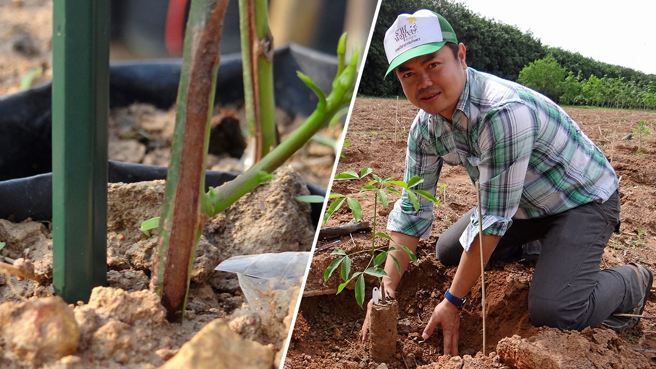“การขยายพันธุ์ยางพาราที่นิยมกันตั้งแต่อดีตจนถึงปัจจุบัน จะใช้วิธีการติดตาต้นตออายุ 6 เดือน ก่อนจะนำมาเพาะเลี้ยงเป็นยางชำถุงอีก 6 เดือน ถึงจะให้ใบยาง 1 ฉัตร รวมแล้วก่อนจะนำลงปลูกได้ ต้องเสียเวลาอย่างน้อย 1 ปี แต่ตอนนี้เรามีวิธีใหม่ทำได้เร็วแค่ 4 เดือน สามารถลงดินปลูกได้แล้ว แถมยังทำให้ต้นกล้าโตไว น้ำยางที่ออกมามีเปอร์เซ็นต์น้ำยางสูงกว่าแบบเดิม”