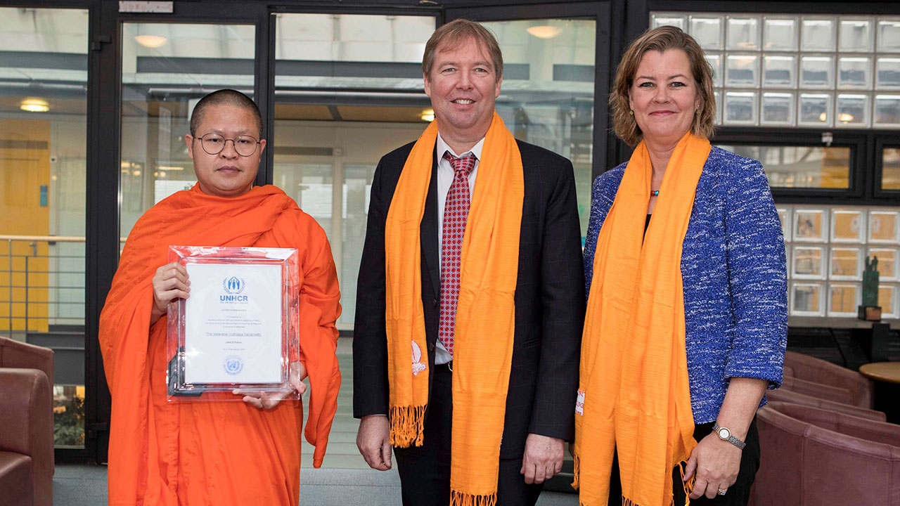 สำนักงานข้าหลวงใหญ่ผู้ลี้ภัยแห่งสหประชาชาติ หรือ UNHCR ถวายตำแหน่ง “ผู้อุปถัมภ์ UNHCR ด้านสันติภาพ และความเมตตา” แด่พระมหาวุฒิชัย วชิรเมธี หรือ ว.วชิรเมธี โดยมีนางเคลลี เคลเมนตส์ รองข้าหลวงใหญ่ UNHCR เป็นผู้มอบใบประกาศ.