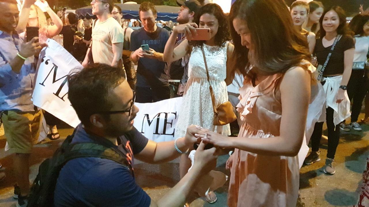 ที่ จ.เชียงใหม่ สำหรับงานประเพณียี่เป็งเชียงใหม่ค่ำคืนนี้ เจ้าหน้าที่ได้มีวางมาตรการคุมเข้มความปลอดภัย โดยมีการนำโคมล้านนามาแขวนให้ตามจุดต่างๆให้นักท่องเที่ยวได้ชม ซึ่งบริเวณเชิงสะพานนวรัฐ หน้าจวนผู้ว่าราชการจังหวัดเชียงใหม่ มีนักท่องเที่ยวทั้งชาวยุโรป อเมริกา และชาวจีน ต่างพากันไปลอยกระทงลงในแม่น้ำปิงจนแน่นขนัด อีกทั้งยังมีเรื่องสุดประทับใจ เมื่อหนุ่มชาวจีน ยืนถือป้ายมีข้อความระบุว่า "MARRY ME" ขอแฟนสาวแต่งงาน พร้อมทั้งคุกเข่าสวมแหวนเพชรให้ ท่ามกลางเสียงปรบมือแสดงความยินดีของผู้ที่อยู่ในเหตุการณ์