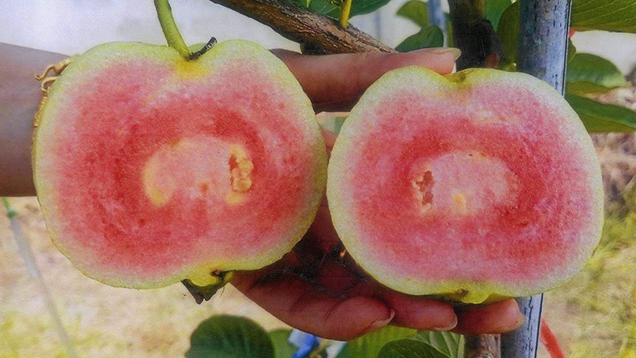 ผลมีขนาดใหญ่เนื้อในและไส้กลางเป็นสีแดงอมชมพู ผ่าแล้วสวยงามน่าชมยิ่งนัก มีเมล็ดน้อย รสชาติของเนื้อสุกหรือแก่จัด จะมีความหวานกรอบปนรสเปรี้ยวเล็กน้อย เนื้อไม่แข็งรับประทานอร่อยมาก ที่สำคัญของ “ฝรั่งหงเปาสือ” จะมีกลิ่นหอมเฉพาะตัวเหมือนกลิ่นของสตรอว์เบอร์รีอีกด้วย จึงทำให้มีรสชาติดียิ่งขึ้น ผู้นำเข้าจึงตั้งชื่อเป็นภาษาไทยว่า “ฝรั่งหงเปาสือ” ดังกล่าว พร้อมขยายพันธุ์ตอนกิ่งออกวางขาย ได้รับความนิยมจากผู้ซื้อไปปลูกอย่างกว้างขวาง มีกิ่งตอนเท่าไหร่ไม่พอขาย