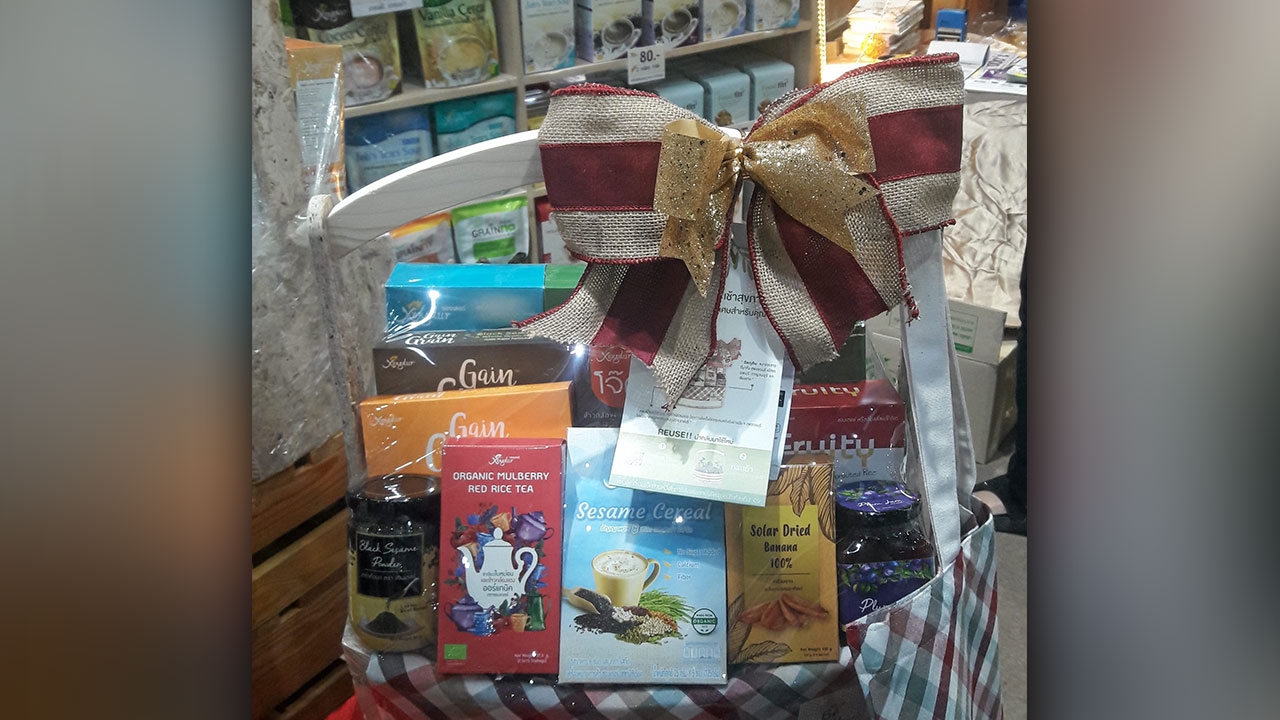 แถมยังรวบรวมเอาผลิตภัณฑ์ของดีแต่ละพื้นที่ทั่วประเทศจากเกษตรกรโดยตรง มารวมไว้ในกระเช้าเดียว ใครอยากอุดหนุนโอทอปจากชุมชนไหน เขาจัดลงกระเช้าให้ได้