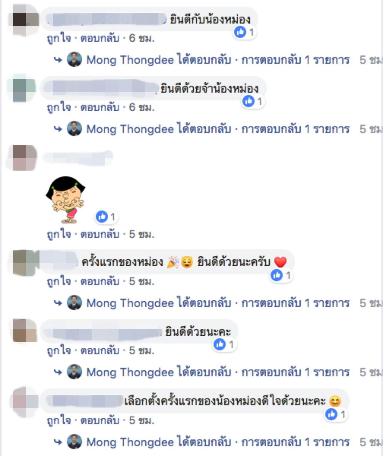 พร้อมระบุข้อความว่า "ผมมาใช้สิทธิ์ของผมแล้วนะครับ #เลือกตั้ง62" ซึ่งคนที่ติดตามต่างเข้ามายินดีกันเป็นจำนวนมากกับการได้ใช้สิทธิ์ครั้งแรกของ หม่อง ทองดี หลังจากที่เพิ่งได้รับสัญชาติไทย.