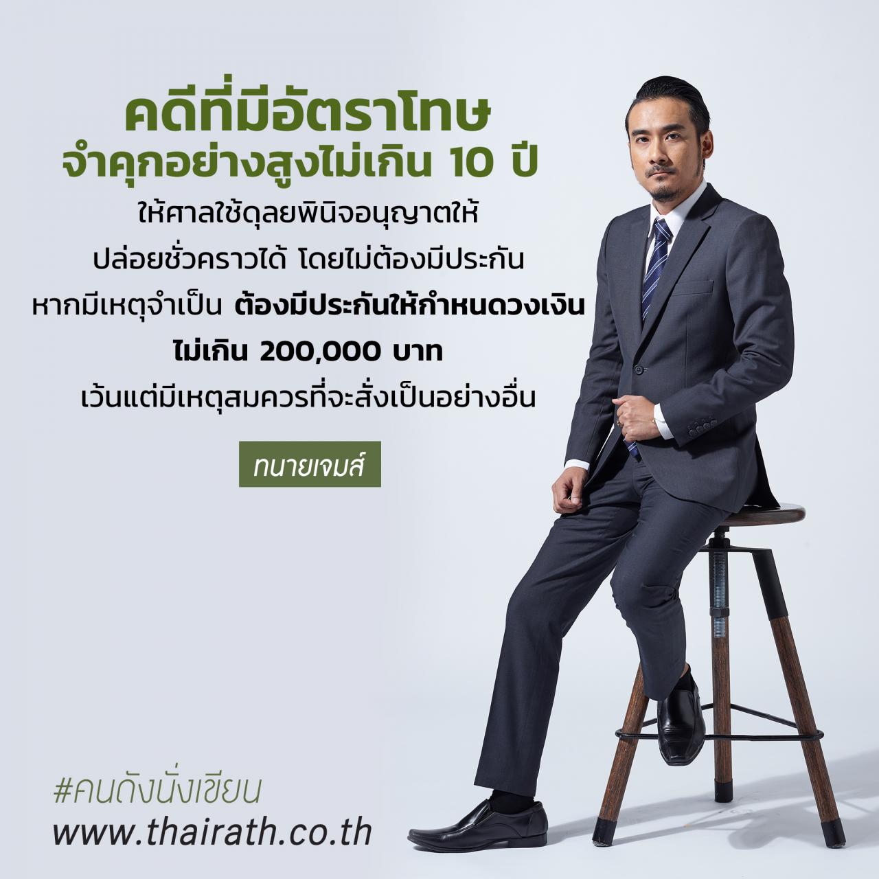 “คดีที่มีอัตราโทษจำคุกอย่างสูงไม่เกิน 10 ปี ให้ศาลใช้ดุลพินิจอนุญาตให้ปล่อยชั่วคราวได้ โดยไม่ต้องมีประกัน หากมีเหตุจำเป็นต้องมีประกันให้กำหนดวงเงินไม่เกิน 200,000 บาท เว้นแต่ มีเหตุสมควรท่ีจะส่ังเป็นอย่างอื่น ก็ให้ระบุเหตุน้ันไว้โดยชัดแจ้ง”