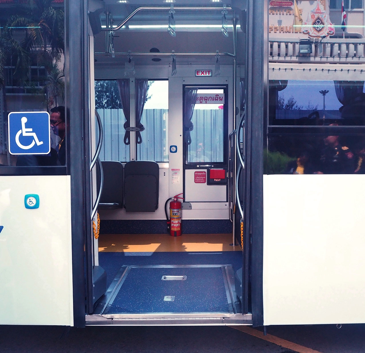รถโดยสารออกแบบตามหลัก Universal design ให้ความสะดวกสบายกับผู้โดยสารทุกเพศ ทุกวัย โดยพื้นรถโดยสารเป็นแบบชานต่ำ พร้อมระบบปรับความสูงของรถ (Kneeling system) ขณะจอดรับ-ส่งผู้โดยสาร ขึ้น-ลงได้ง่าย สะดวก พร้อมติดตั้งทางลาด เพื่ออำนวยความสะดวกแก่ผู้โดยสารที่เดินทางด้วยวีลแชร์ หรือกระเป๋าเดินทาง และมีพื้นที่ Free space สามารถจัดเป็นพื้นที่รองรับผู้โดยสารที่เดินทางด้วยวีลแชร์ หรือสามารถใช้เป็นที่ยืนสำหรับผู้โดยสารที่เดินทางพร้อมสัมภาระขนาดใหญ่