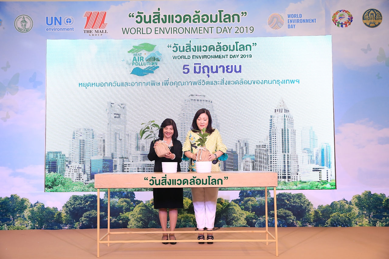 วรลักษณ์ ตุลาภรณ์ CHIEF MARKETING OFFICER, บริษัท เดอะมอลล์ กรุ๊ป จำกัด กล่าวว่า “เดอะมอลล์ กรุ๊ป ร่วมกับ กรุงเทพมหานคร และโครงการสิ่งแวดล้อมแห่งสหประชาชาติ จัดงาน “วันสิ่งแวดล้อมโลก ประจำปี 2562” เพื่อป้องกันและแก้ไขปัญหามลพิษในอากาศอันจะส่งผลกระทบต่อสุขภาพของประชาชน โดยในปีนี้ โครงการสิ่งแวดล้อมแห่งสหประชาชาติ ได้กำหนดแนวคิดด้านสิ่งแวดล้อม ภายใต้หัวข้อ “BEAT AIR POLLUTION” ซึ่งกรุงเทพมหานคร ในฐานะที่เป็นเมืองหลวงสำคัญแห่งภูมิภาคเอเชียตะวันออกเฉียงใต้ ที่เพิ่งจะผ่านพ้นปัญหามลภาวะทางอากาศ ขานรับแนวคิดดังกล่าวฯ พร้อมกำหนดมาตรการแก้ไขปัญหามลพิษทางอากาศ ด้วย 15 มาตรการลด และ 2 มาตรการเพิ่ม ด้วยการปฏิบัติตนง่ายๆ ในชีวิตประจำวันแบบเป็นมิตรกับสิ่งแวดล้อม เช่น ลดการใช้รถยนต์ส่วนบุคคล หันมาใช้การขนส่งมวลชนมากขึ้น, ร่วมกันปลูกไม้ยืนต้นเพิ่มพื้นที่สีเขียว เพื่อลดปัญหามลพิษฝุ่นละอองในอากาศอย่างยั่งยืนในอนาคต
