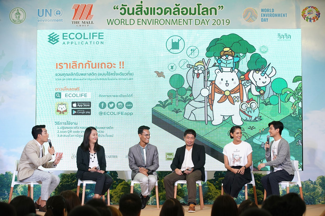 พร้อมเปิดตัวความร่วมมือกันอย่างเป็นทางการ ระหว่างแอปพลิเคชัน ECOLIFE และ เดอะมอลล์ กรุ๊ป ในการเปิดใช้บริการ ECOLIFE แอปพลิเคชันลดการใช้พลาสติกแบบครั้งเดียวทิ้ง เช่น ถุงพลาสติก, หลอด, แก้วน้ำ, ช้อน-ส้อม เป็นต้น เมื่อใช้บริการตามร้านค้าต่างๆ ที่ร่วมกิจกรรม และปฏิเสธการใช้พลาสติก รับสิทธิ์สแกน QR CODE สะสมตัวการ์ตูน และคะแนน เพื่อแลกรับสิทธิประโยชน์พิเศษต่อไป สามารถช่วยกันดูแลโลก และสนุกไปพร้อมๆ กัน ได้ที่ห้างสรรพสินค้าในเครือเดอะมอลล์ฯ ตั้งแต่วันที่ 5 มิถุนายน (วันสิ่งแวดล้อมโลก) จนถึงวันที่ 4 ธันวาคม 2562 (วันสิ่งแวดล้อมไทย) ซึ่งถือว่า เดอะมอลล์ กรุ๊ป เป็นธุรกิจรีเทลแห่งแรกที่ร่วมกับ ECOLIFE อย่างเป็นจริงจังและเป็นรูปธรรม หลังจากที่ทดลองใช้งานในมหาวิทยาลัยกว่า 30 แห่งทั่วประเทศ สำหรับผู้ที่สนใจสามารถดาวน์โหลดแอปพลิเคชัน ECOLIFE ได้ฟรี ผ่านระบบ Google Play และ App Store