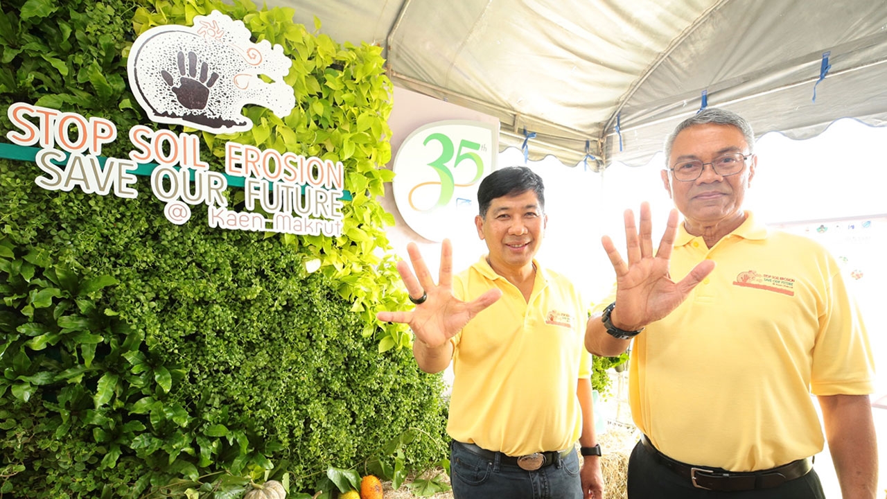 ดร.วิวัฒน์ ศัลยกำธร รัฐมนตรีช่วยว่าการกระทรวงเกษตรและสหกรณ์ และนายกสมาคมดินโลก ประธานเปิดโครงการ กล่าวว่า ประเทศไทยพบพื้นที่ประสบปัญหาการชะล้างพังทลายของดิน กว่า 108 ล้านไร่ หรือ ร้อยละ 33 ของพื้นที่ประเทศ ซึ่งสูงกว่าค่าเฉลี่ยอัตราส่วนการชะล้างพังทลายของดินของโลกและกลุ่มประเทศในเอเชียและแปซิฟิก การจัดงานวันดินโลก คณะกรรมการ Global Soil Partnership และ FAO จึงกำหนดให้ทั่วโลกร่วมกันรณรงค์ “Stop Soil Erosion, Save our Future” เพื่อช่วยแก้ไขและป้องกันปัญหาความแห้งแล้งและการขาดแคลนอาหารในระยะยาว ซึ่งปัญหานี้สามารถทำได้โดยใช้ศาสตร์พระราชา คือ การทำนาและคลองไส้ไก่ เพื่อกักเก็บน้ำและตะกอน การปลูกหญ้าแฝก ฝายชะลอน้ำ และป่า 5 ระดับ จากการดูพื้นที่แก่นมะกรูด ซึ่ง World soil Day กำหนดจัดขึ้นในวันที่ 5 ธันวาคม ของทุกปี เพื่อเชิดชูพระอัจฉริยภาพด้านการอนุรักษ์ และพัฒนาทรัพยากรดินขององค์พระบาทสมเด็จพระเจ้าอยู่หัวฯ รัชกาลที่ 9 ด้านนายเกียรติชาย ไมตรีวงษ์ รองกรรมการผู้จัดการใหญ่ กลุ่มงานวางแผนยุทธศาสตร์และพัฒนาความยั่งยืนองค์กร บริษัท บางจาก คอร์ปอเรชั่น จำกัด (มหาชน) กล่าวว่า บริษัท บางจากฯ ให้ความสำคัญในการดูแลสิ่งแวดล้อมและสังคมมาโดยตลอด รวมถึงการมีส่วนร่วมชะลอปัญหาการเปลี่ยนแปลงสภาวะสภาพภูมิอากาศ หรือโลกร้อน การขยายธุรกิจสู่พลังงานสีเขียว พร้อมพัฒนาธุรกิจ Bio Economy โดยในปีนี้ได้เข้าร่วมโครงการด้านดิน เพราะเห็นว่าเป็นแนวที่จะช่วยบรรเทาผลกระทบจากโลกร้อน เพราะดินเป็นทรัพยากรธรรมชาติที่จะก่อให้เกิดชีวิต เป็นแหล่งอาหาร แหล่งพลังงาน หากดินเสื่อมภาพจะนำภัยพิบัติมาสู่ผู้คน โดยเฉพาะเกษตรกร เนื่องในโอกาส 35 ปี บางจากฯ จึงเข้าร่วมโครงการ “หยุดการชะล้างพังทลายของดิน คืนชีวิตให้แก่นมะกรูด” ร่วมกับสถาบันส่งเสริมและพัฒนากิจกรรมปิดทองหลังพระ สืบสานแนวพระราชดำริ มูลนิธิกสิกรรมธรรมชาติ กรมพัฒนาที่ดินและจังหวัดอุทัยธานี ซึ่งเป็นเครือข่ายขับเคลื่อนเพื่อร่วมกันแก้ไขปัญหาการชะล้างพังทลายของดินด้วยการน้อมนำศาสตร์พระราชามาใช้ในการอนุรักษ์ดินและน้ำ เพื่อส่งเสริมคุณภาพชีวิตที่ดินของเกษตรกรตำบลแก่นมะกรูด อำเภอบ้านไร่ จังหวัดอุทัยธานี และยังป้องกันการบุกรุกพื้นที่เขตป่าสงวนแห่งชาติและเขตรักษาพันธุ์สัตว์ป่าห้วยขาแข้ง