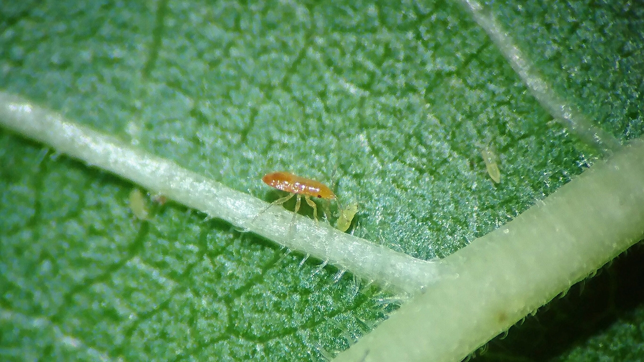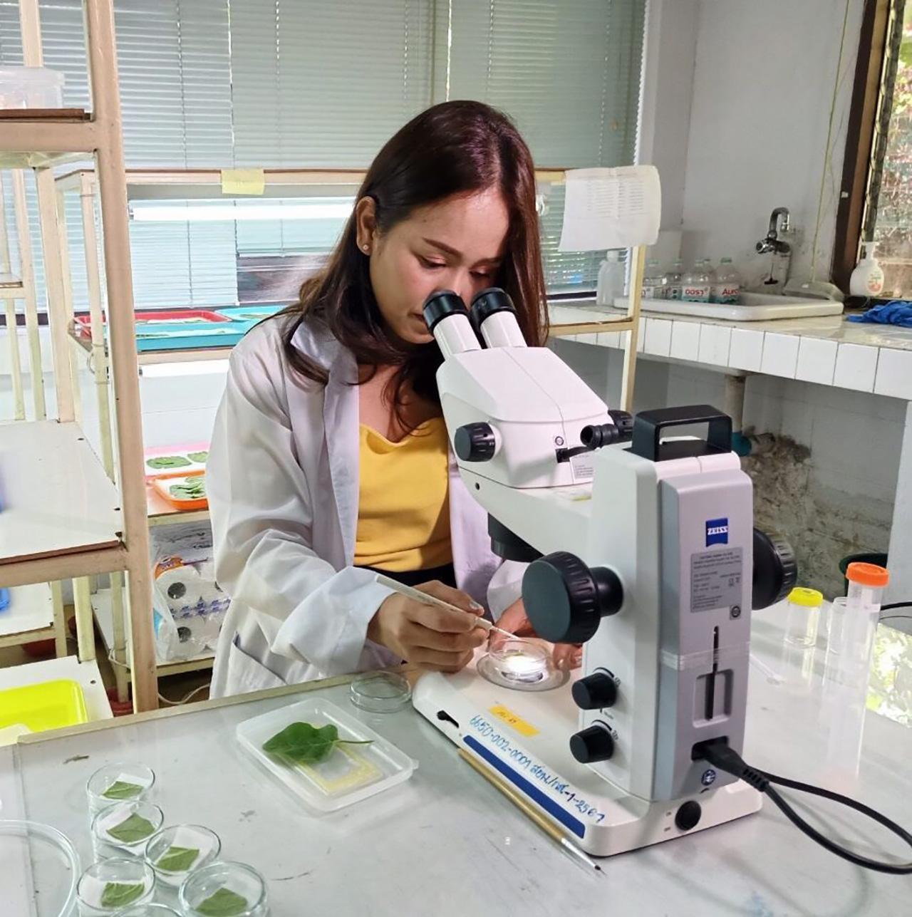 น.ส.อทิติยา แก้วประดิษฐ์ นักกีฏวิทยาชำนาญการ สำนักวิจัยพัฒนาการอารักขาพืช กรมวิชาการเกษตร เผยถึงผลการทดลองในห้องแล็บ มวนตัวห้ำที่เธอพบเจอสามารถกินเพลี้ยไฟได้ถึงวันละ 30 ตัว...ทดลองในโรงเรือน กินเพลี้ยไฟได้วันละ 15 ตัว