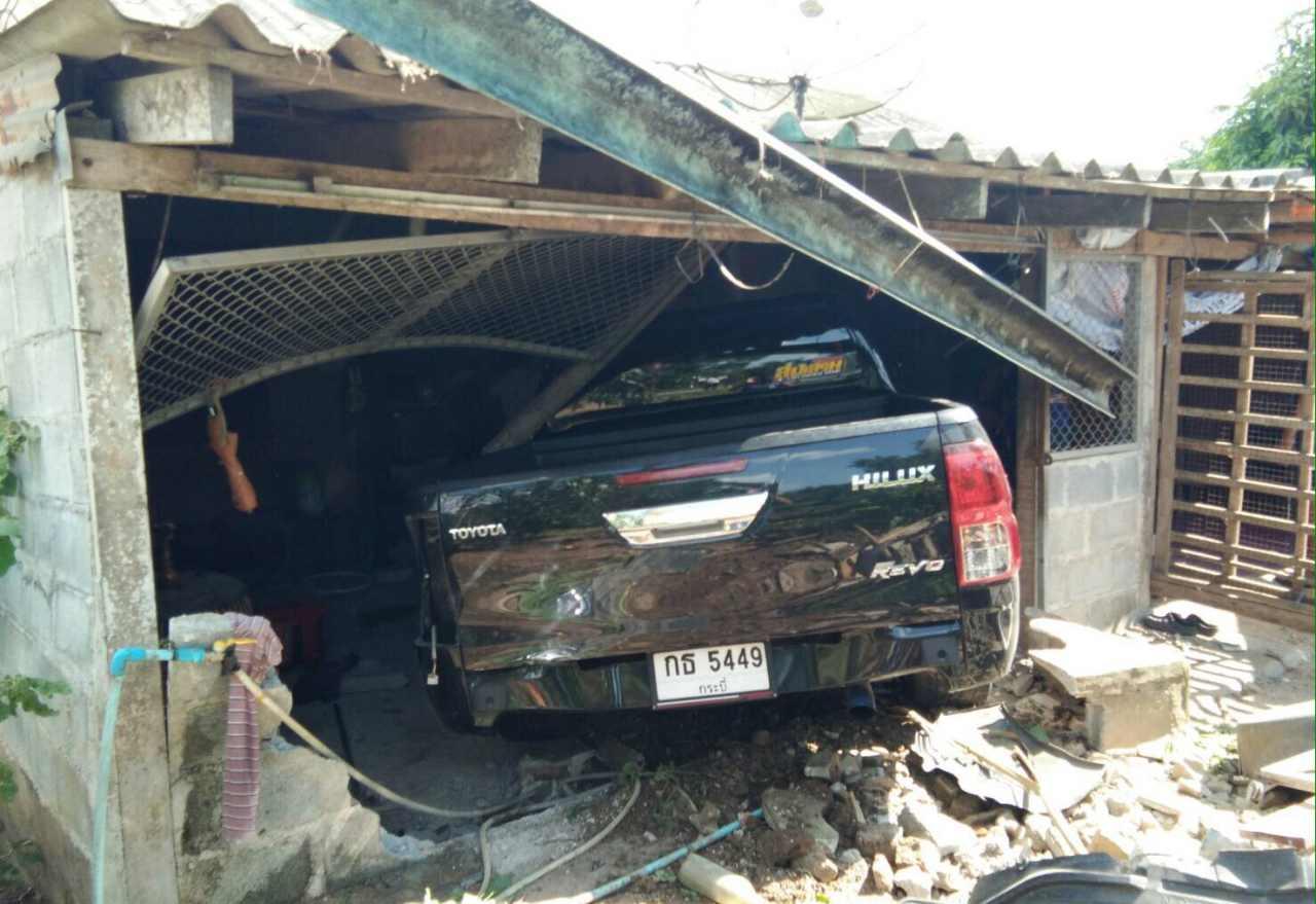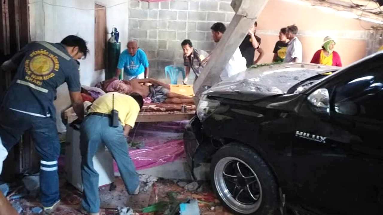 เหตุการณ์ดังกล่าวเกิดขึ้นเมื่อช่วงบ่าย วันที่ 9 ก.ค.ที่ผ่านมา ตำรวจ สภ.เหนือคลอง รับแจ้งมีเหตุรถกระบะพุ่งชนเข้าบ้าน เจ้าหน้าที่เข้าไปตรวจสอบ พบรถกระบะ โตโยต้ารีโว่ สีเทาดำ ทะเบียน กธ 5449 กระบี่ มีนายสมเกียรติ จุลเพ็ชร อายุ 36 ปี ชาว อ.เขาพนม จ.กระบี่ พุ่งชนทะลุกำแพงบ้านเข้าไปภายในตัวบ้าน รถเข้ามาหยุดอยู่ใกล้กับเตียงที่นายสีแปลงนอนพักอยู่ ห่างจากเตียงเพียง 1 ฟุต ในสภาพหน้ารถชนเสาบ้านหัก 2 ท่อน