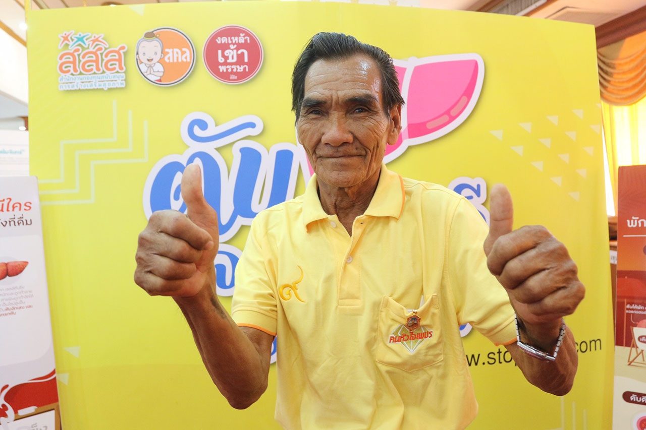 นายใบ พู่พันชิต วัย 71 ปี “คนหัวใจเพชร” ที่เลิกเหล้ามากำลังจะย่างเข้าสู่พรรษาที่ 4 เล่าให้ฟังถึงเส้นทางการงดเหล้าว่า “ดื่มเหล้ามาตั้งแต่อายุ 12 ปี รับจ้างทำไร่ทำสวนก็มีแต่หนี้สิน เพราะใช้จ่ายไปกับค่าเหล้า และไม่มีแรงทำงาน พอได้เข้าร่วมโครงการของสสส. ค่อยๆ เริ่มจากทีละพรรษา ทำไปทำมา ออกพรรษาแล้วเราไม่กินก็อยู่ได้ ตื่นมามีแรงทำงาน ปลดหนี้ได้อีก พอเราเลิกได้ คนรอบๆ ตัวก็หันมามองว่า เขาก็ต้องทำได้เหมือนกัน เพราะเราติดเหล้าหนักมาก กลายเป็นเราช่วยให้คนอื่นได้เลิกเหล้าไปอีก เหมือนได้ทำบุญต่อไป”