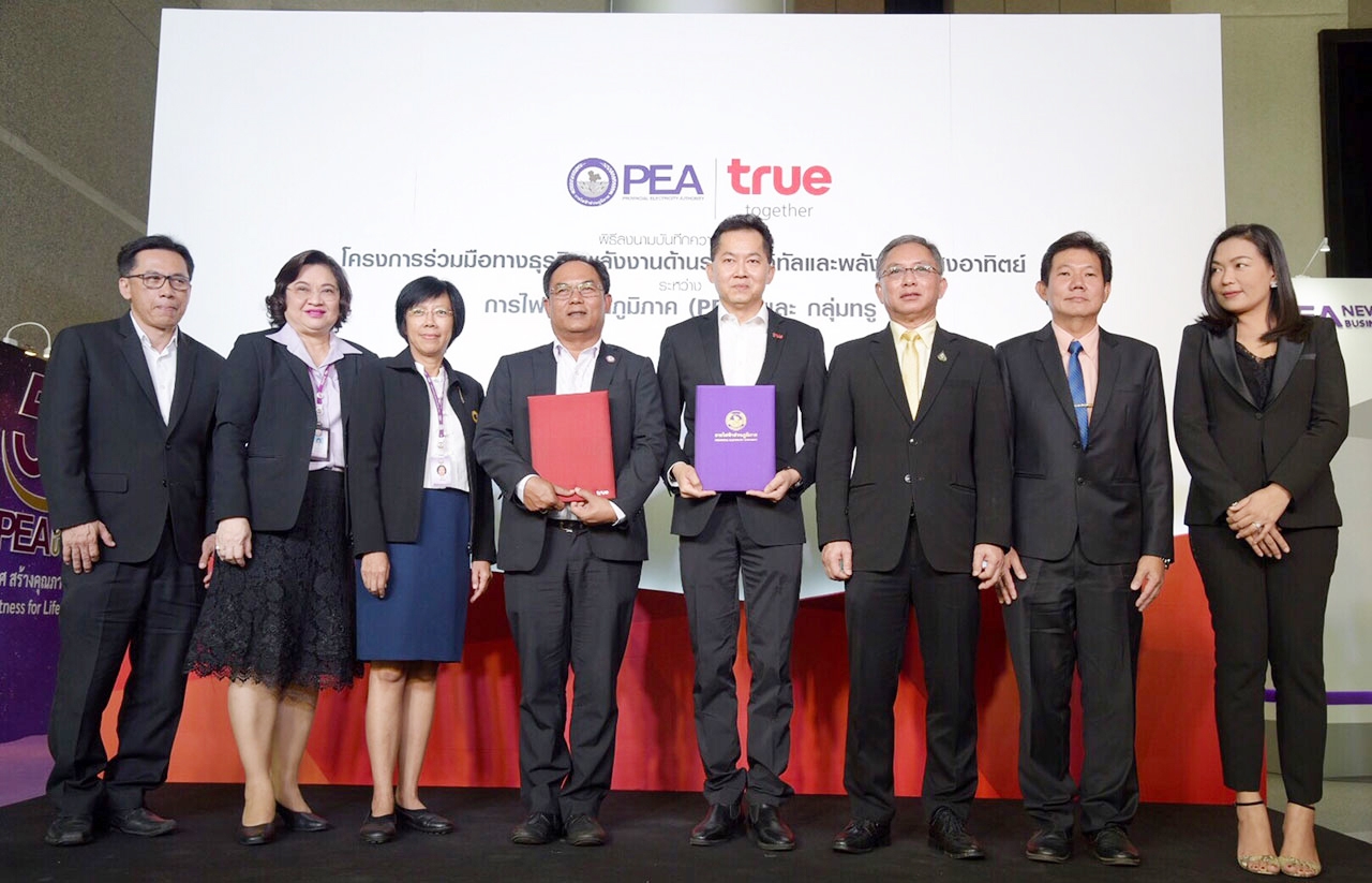 16 กันยายน 2562 เวลา 11.00 น. การไฟฟ้าส่วนภูมิภาค (PEA) และ กลุ่มทรู ร่วมลงนามบันทึกข้อตกลงความร่วมมือ โครงการร่วมมือทางธุรกิจพลังงานด้านระบบดิจิทัล และพลังงานแสงอาทิตย์ (Digital and Solar Energy Business Project) ด้วยเทคโนโลยี Digital Platform และ IoT โดยมี นายเขมรัตน์ ศาสตร์ปรีชา รองผู้ว่าการการไฟฟ้าส่วนภูมิภาค และ นายพิรุณ ไพรีพ่ายฤทธิ ผู้อำนวยการด้านภาครัฐและภาคการศึกษา บริษัท ทรู คอร์ปอเรชั่น จำกัด (มหาชน) ร่วมลงนาม ณ โถง ชั้น 1 อาคาร LED สำนักงานใหญ่ PEA