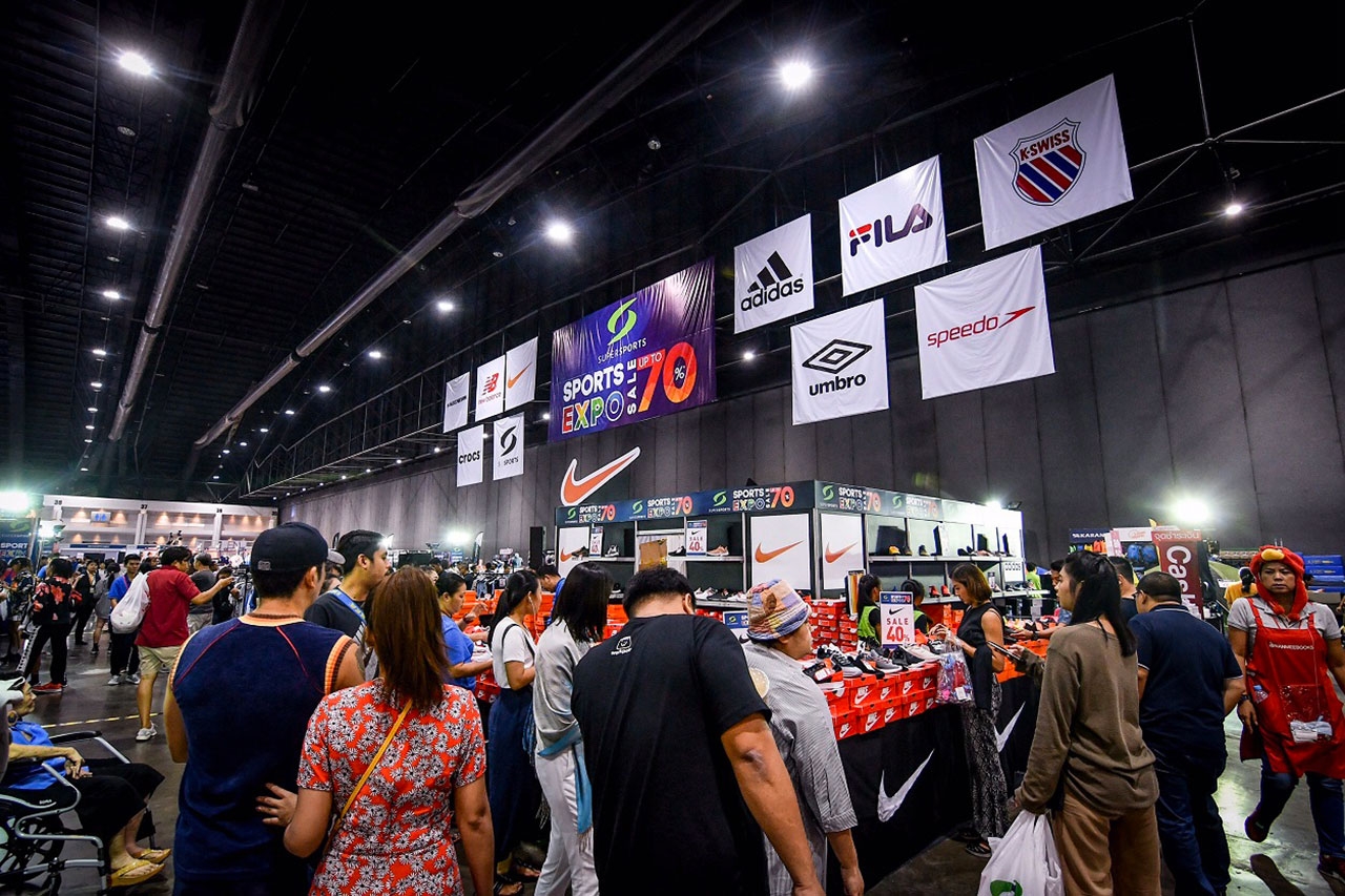 และที่พลาดไม่ได้พบกับมหกรรมสินค้าและอุปกรณ์กีฬาในราคาพิเศษที่สุดแห่งปี โปรโมชั่นดีที่สุดในรอบปี จากผู้ผลิตและผู้จัดจำหน่าย อาทิ FBT, Supersports, ICC ทั้งจากแบรนด์สินค้าไทยและต่างประเทศ กว่า 500 แบรนด์ชั้นนำ มาร่วมลดราคาแบบล้างสต๊อก 30-80%