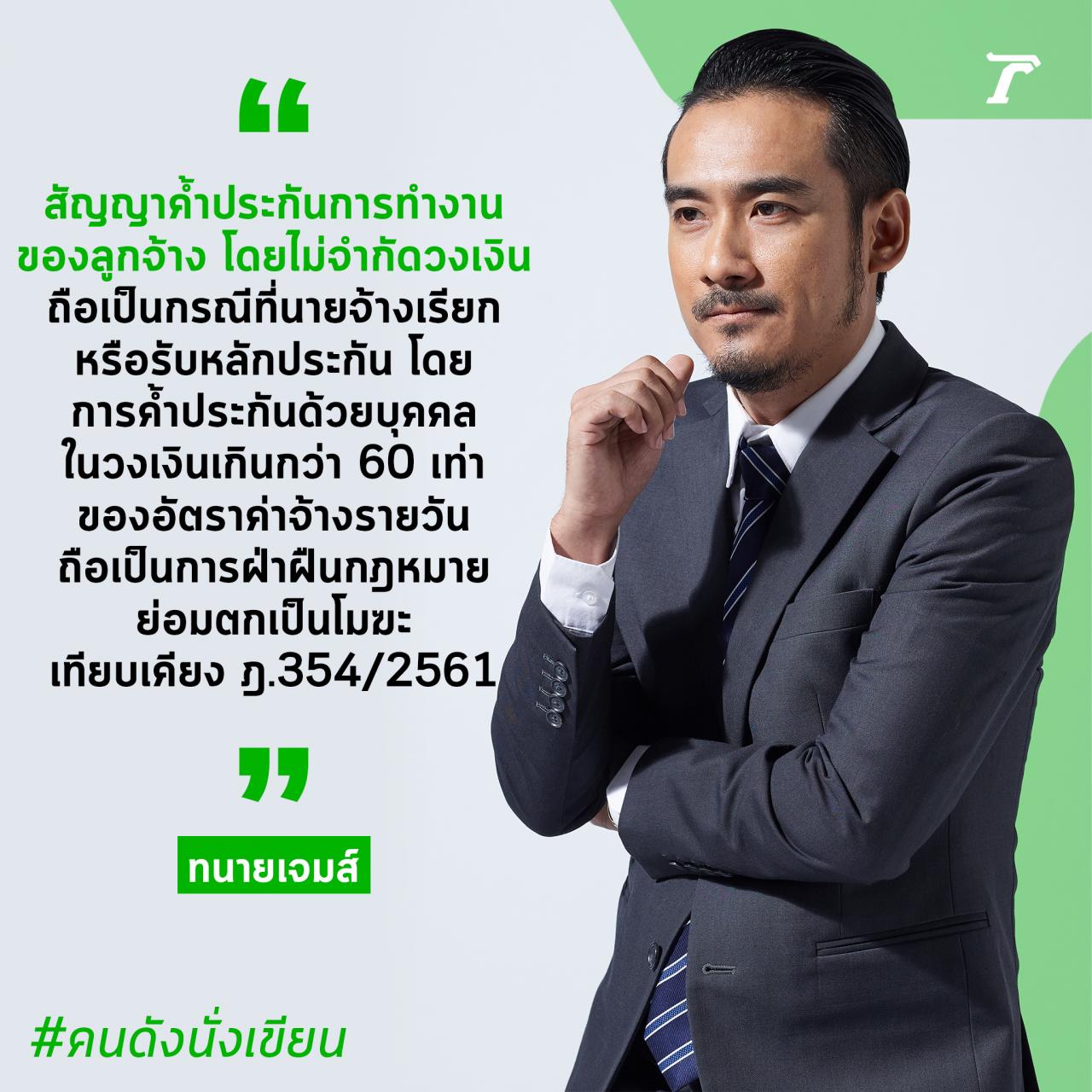 สำหรับท่านที่มีคำถามข้อสงสัยเกี่ยวกับเรื่องกฎหมายและต้องการความช่วยเหลือ หรือมีเรื่องราวดีๆ อยากแบ่งปันประสบการณ์ เมลมาหาผมที่ “คุยกับคนดัง” talktoceleb@trendvg3.com ได้เลยครับ หรือ Facebook: ทนายเจมส์ LK Instagram : james.lk