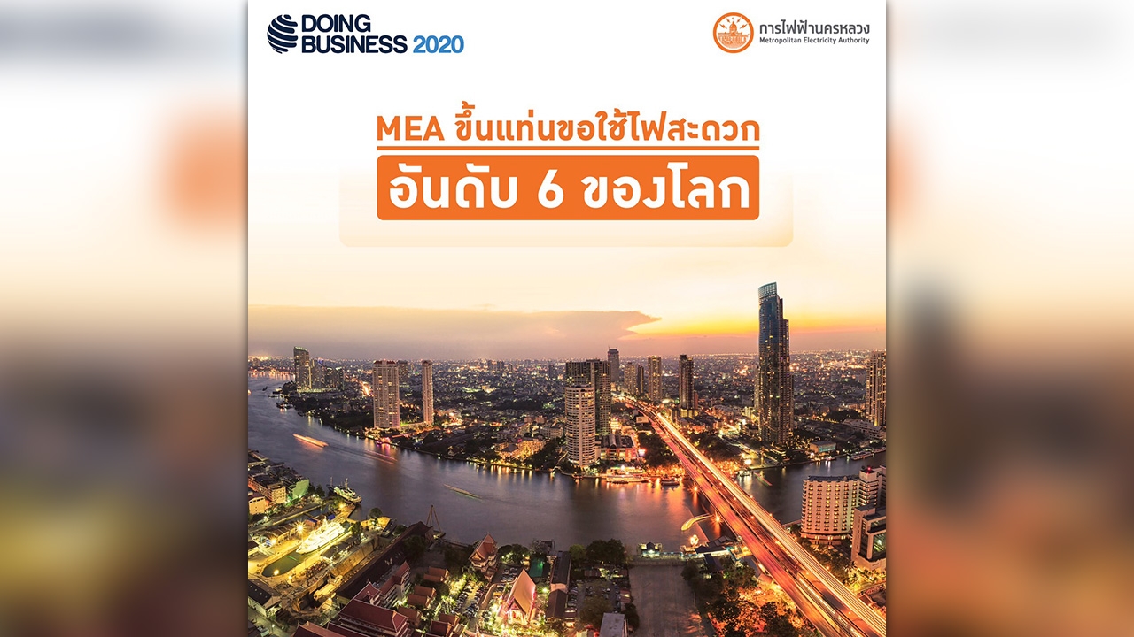 ผู้ว่าการการไฟฟ้านครหลวง หรือ MEA กล่าวว่า MEA เป็นรัฐวิสาหกิจสังกัดกระทรวงมหาดไทย มุ่งมั่นขับเคลื่อนวิสัยทัศน์พลังงานเพื่อวิถีชีวิตเมืองมหานคร ที่ให้บริการด้านจำหน่ายไฟฟ้าองค์กรเดียวของประเทศไทยที่ได้รับเลือกให้เข้าร่วมรับการประเมินความสะดวกด้านการขอใช้ไฟฟ้าในการจัดอันดับจากธนาคารโลก (World Bank) ที่มีความสะดวกในการเข้าไปประกอบธุรกิจ (Ease of Doing Business) จาก 190 ประเทศทั่วโลก ผลการจัดอันดับประจำปี พ.ศ. 2563 พบว่า ความสะดวกด้านการขอใช้ไฟฟ้าของประเทศไทยพัฒนารวดเร็วโดดเด่นขึ้นอย่างมาก โดยคะแนนการประเมินเพิ่มจาก 98.57 เมื่อปี พ.ศ. 2562 มาเป็น 98.70 ในปี พ.ศ. 2563 รักษาตำแหน่งเป็นอันดับที่ 6 ของโลก ซึ่งผลคะแนนดังกล่าว เป็นหนึ่งในปัจจัยที่ช่วยยกระดับภาพรวมความยาก-ง่ายในการประกอบธุรกิจของประเทศไทย เลื่อนขึ้นจากอันดับที่ 27 ของปี 2562 เป็นอันดับที่ 21 ของโลก ถือเป็นการเลื่อนขึ้นถึง 6 อันดับ