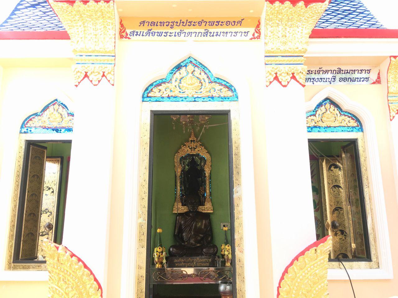 จนถึงปัจจุบัน...ศาล "พระเจ้าตากสิน" เป็นศาลทรงเก้าเหลี่ยม และมีหลังคาเป็นรูปพระมาลา และยังเป็นที่ประดิษฐานพระบรมรูปสมเด็จพระเจ้าตากสินมหาราช ซึ่งหล่อด้วยทองเหลืองรมดำ ส่วนผนังภายในเขียนลายพุ่มข้าวบิณฑ์ไว้อย่างสวยงาม