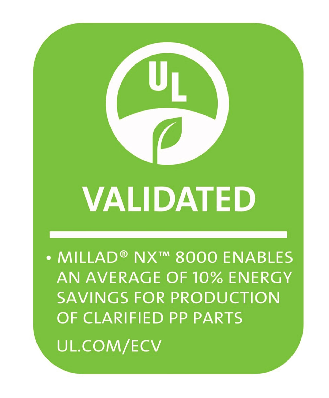 UL หรือ Underwriters Laboratories คือองค์กรระดับโลกที่ทำหน้าที่ทดสอบและให้การรับรองความปลอดภัยของผลิตภัณฑ์ต่างๆ ซึ่งเครื่องหมายการรับรอง UL Green Label Certification ก็ได้รับการยอมรับจากผู้ผลิตทั่วโลก การใช้ Millad® NX™ 8000 ในการผลิตพลาสติกพอลิโพรพิลีนคุณภาพสูง จะช่วยให้ผู้ประกอบการลดอุณหภูมิในการผลิตขึ้นรูปผลิตภัณฑ์ได้อย่างน้อย 10 เปอร์เซ็นต์ เป็นการลดการใช้พลังงาน และลดปริมาณการปล่อยก๊าซเรือนกระจกได้ด้วย นอกจากนี้ Millad® NX™ 8000 นี้ยังทำให้ผลิตภัณฑ์พลาสติกพอลิโพรพิลีน มีความใส ดูแล้วสวยงาม และสามารถดึงดูดผู้บริโภคมากขึ้น