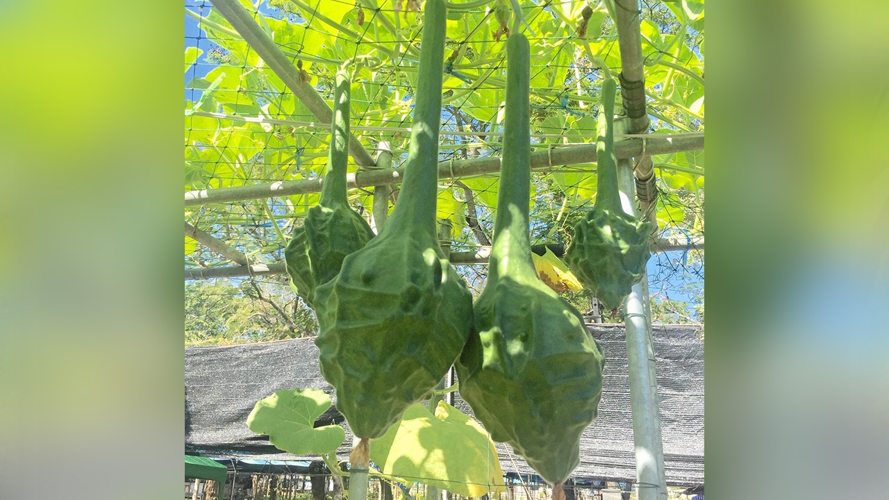 นิทรรศการ “มหัศจรรย์ พันธุกรรม” ในงานเกษตรกำแพงแสน จ.นครปฐม หน้าคณะเกษตร มหาวิทยาลัยเกษตรศาสตร์ วิทยาเขตกำแพงแสน ที่จัดขึ้นระหว่าง 1-10 ธ.ค.62 มีพืชหลากหลาย แต่โฟกัสไปที่น้ำเต้า พืชอาหารบ้านเรา มีหลายรูปทรง ยาวสั้น กลม แบน แต่ที่แปลกแตกต่างออกไปมาก เป็นทรงกลมยาวกว่า 30 ซม. แถมมีลักษณะคล้ายหนามเป็นตะปุ่มตะป่ำ ที่เรียกกันว่า...น้ำเต้ามังกร