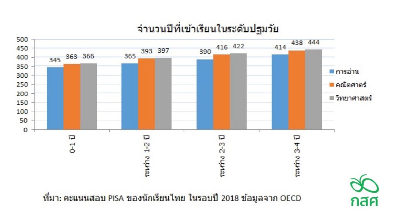 ดร.ภูมิศรัณย์ ทองเลี่ยมนาค ผู้เชี่ยวชาญด้านเศรษฐศาสตร์การศึกษา กสศ. กล่าวว่าจากการเก็บข้อมูลขององค์กร OECD ผ่านทางการทดสอบ PISA ที่ผ่านมาในปี 2018 และ 2015 พบว่าประเทศที่เยาวชนกลุ่มอายุ 15 ปี สามารถทำคะแนนได้ดี มีความสัมพันธ์อย่างมีนัยสำคัญกับจำนวนปีที่ใช้ในการเข้าเรียนในระดับปฐมวัย รายงานของ PISA พบว่าสัดส่วนของนักเรียนอายุ 15 ที่มีความรู้ด้านวิทยาศาสตร์ คณิตศาสตร์ และการอ่าน ในระดับต่ำกว่ามาตรฐาน มีความสัมพันธ์กับจำนวนปีที่ขาดโอกาสในการเข้าเรียนในระดับปฐมวัยอย่างชัดเจน ผู้ที่ได้เรียนปฐมวัยเพียง 1 ปีหรือน้อยกว่านั้น จะมีผลสัมฤทธิ์ที่ต่ำกว่าผู้ที่มีโอกาสได้เรียน 2-3 ปีขึ้นไปเป็นอย่างมาก และเรื่องนี้มีความสัมพันธ์กับเศรษฐานะของครอบครัวด้วย นั่นคือหากครอบครัวอยู่ในกลุ่มด้อยโอกาสทางเศรษฐานะ จะยิ่งมีโอกาสในการเข้าเรียนระดับปฐมวัยที่น้อยลง ดังนั้นภาครัฐจึงมีความจำเป็นที่จะต้องมุ่งช่วยเหลือครอบครัวของเด็กเล็กที่อยู่ในกลุ่มที่มีความยากลำบากทางเศรษฐกิจและสังคมเพื่อให้ได้มีโอกาสในการเข้าเรียนในระดับปฐมวัยเพื่อผลในระยะยาว นอกจากนั้น จากกรณีศึกษาของประเทศที่ประสบความสำเร็จในการพัฒนาเยาวชน เช่น ฟินแลนด์ เอสโตเนีย หรือประเทศอื่นๆ ที่มีรัฐสวัสดิการที่ดี ภาครัฐล้วนให้การสนับสนุน เพื่อให้เกิดการศึกษาในระดับปฐมวัยที่มีคุณภาพและทั่วถึง ทั้งโดยการจัดให้มีศูนย์เด็กเล็กที่มีคุณภาพของรัฐ หรือการสนับสนุนภาคเอกชนให้เข้ามาร่วมจัดการ