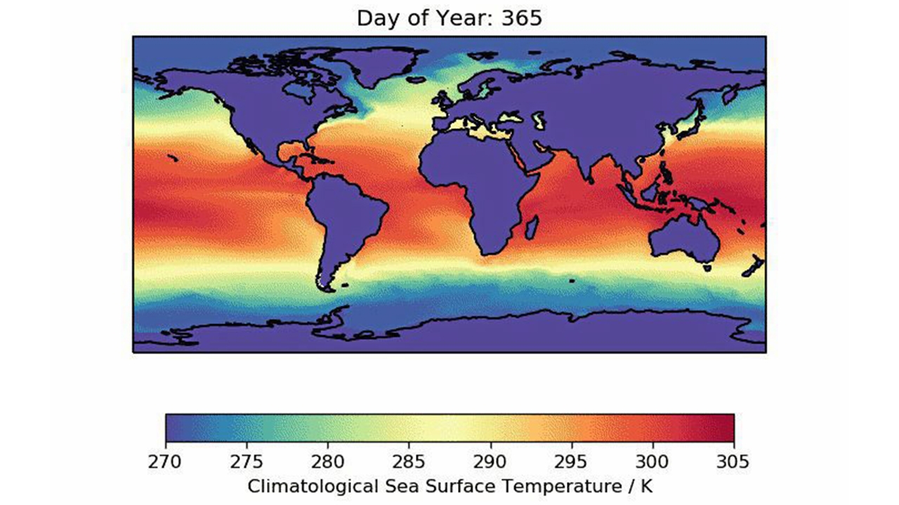 นักวิจัยของโครงการ Climate Change Initiative ขององค์การอวกาศยุโรป หรืออีเอสเอ ได้สร้างชุดข้อมูลเป็นเวลานานเพื่อจับการเปลี่ยนแปลงของอุณหภูมิพื้นผิวทั่วมหาสมุทรโลก พวกเขาอธิบายว่าการแลกเปลี่ยนความร้อนและไอน้ำระหว่างมหาสมุทรและชั้นบรรยากาศมีอิทธิพลต่อการสร้างพายุเฮอริเคนในเขตร้อน และสร้างความรุนแรงของพายุดังกล่าว รวมถึงยังสามารถปรับเปลี่ยนรูปแบบสภาพอากาศในหลายภูมิภาค ทำให้เกิดภัยแล้งและน้ำท่วมอย่างรุนแรงจากพายุที่พัดผ่าน