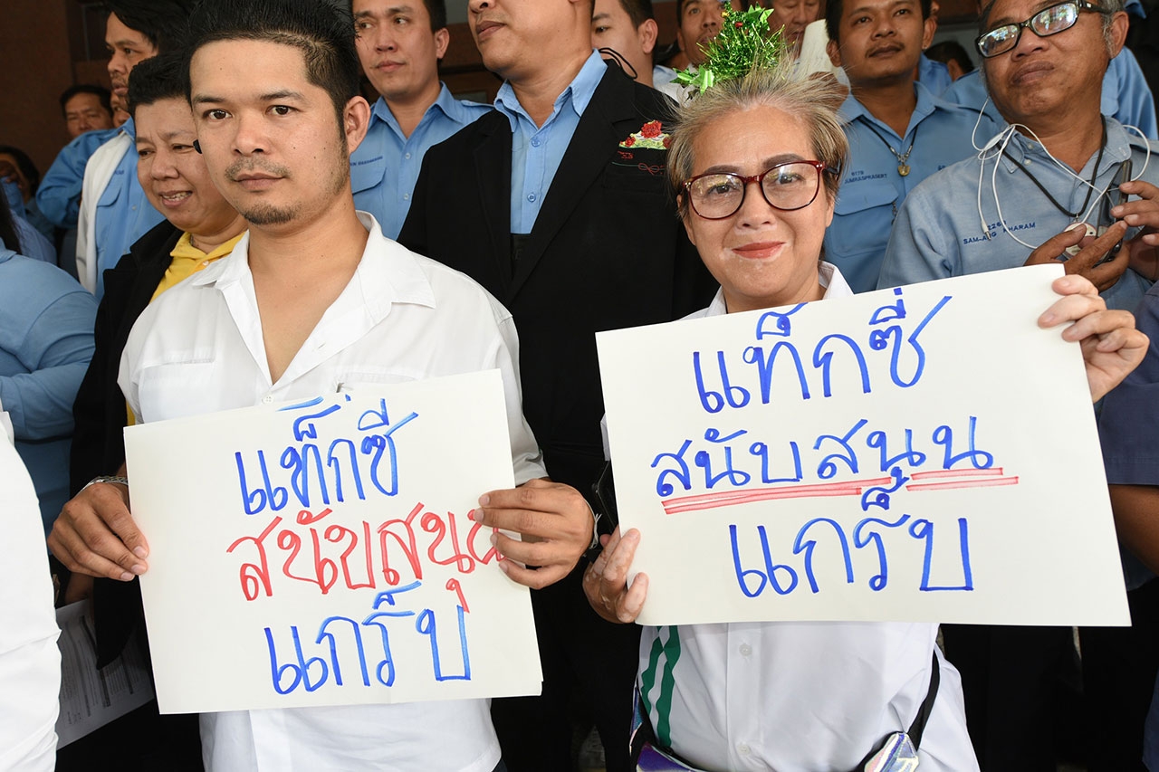เมื่อวันที่ 19 ธันวาคม 2562 เวลาประมาณ 11.30 น. ตัวแทนเครือข่ายผู้ขับแท็กซี่ราว 100 คน จากชมรมผู้ขับขี่แท็กซี่ 4.0 และชมรมแท็กซี่ไทยพัฒนา นำโดย นายจิรภัทร โสภาลัย และ นายกมลาสน์ กุลบันลือพิชญ์ ได้เดินทางเข้ายื่นหนังสือต่อกรมการขนส่งทางบก กระทรวงคมนาคม เพื่อแสดงจุดยืนในการสนับสนุนการดำเนินการของภาครัฐในการส่งเสริมให้บริการรถรับจ้างสาธารณะผ่านแอปพลิเคชันสามารถดำเนินการได้อย่างถูกกฎหมาย ซึ่งจะช่วยให้ผู้ขับแท็กซี่มีโอกาสในการสร้างรายได้เพิ่มขึ้น ส่งเสริมความเท่าเทียมกันจากการที่ผู้ให้บริการแท็กซี่ทุกรายต้องอยู่ภายใต้ระเบียบเดียวกัน ขณะที่ภาครัฐสามารถควบคุมการให้บริการได้อย่างมีประสิทธิภาพ ส่งเสริมความปลอดภัยของผู้ใช้บริการ ตลอดจนส่งเสริมการพัฒนาระบบการคมนาคมที่สอดคล้องกับการพัฒนาเทคโนโลยี