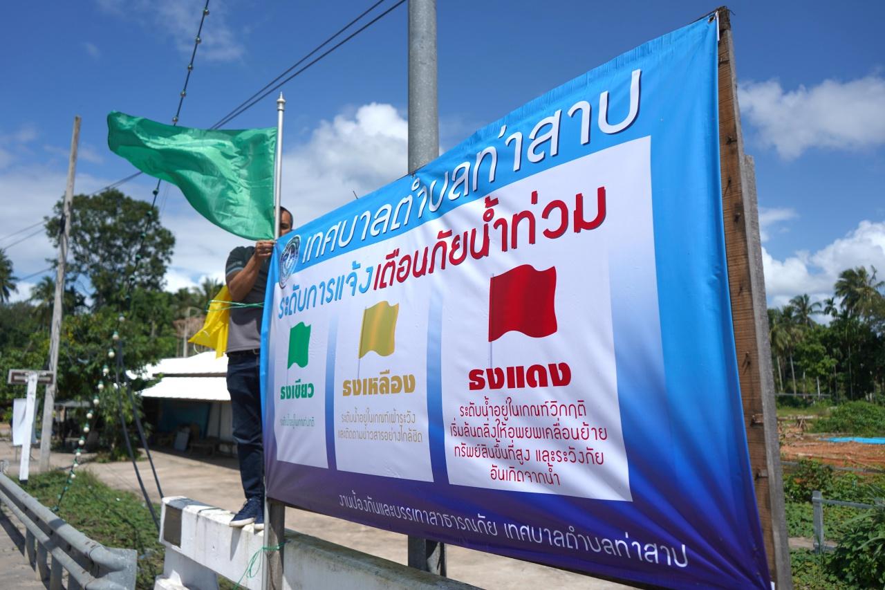 ขณะที่ นายมะสดี หะยีปิ นายกเทศมนตรีตำบลท่าสาป ได้มอบหมายให้ทางเจ้าหน้าที่ดำเนินการสำรวจพื้นที่เสียหาย พร้อมทั้งนำน้ำดื่ม แจกจ่ายให้กับประชาชนที่ได้รับความเดือดร้อน พร้อมทั้งเปลี่ยนธงเขียว แสดงสัญลักษณ์ ระดับน้ำอยู่ในเกณฑ์ปกตินายมะสดี หะยีปิ นายกเทศมนตรีตำบลท่าสาป เปิดเผยว่า จากสถานการณ์ ฝนตกในพื้นที่ตั้งแต่วันที่ 17-18 ที่ผ่านมา ได้มีการติดตามสถานการณ์จากกรมอุตุนิยมวิทยาอย่างต่อเนื่อง โดยทางเทศบาลตำบลท่าสาป ได้มีการแจ้งเตือนประชาชนที่อาศัยอยู่ริมแม่น้ำปัตตานี เป็นระยะๆ มีการติดธงแสดงสัญลักษณ์ 3 สี คือ สีแดง ระดับน้ำอยู่ในเกณฑ์วิกฤติ เริ่มล้นตลิ่งให้อพยพเคลื่อนย้าย ทรัพย์สินขึ้นอยู่ที่สูง และระวังภัยจากน้ำ สีเหลือง ระดับน้ำอยู่ในเกณฑ์เฝ้าระวัง และติดตามข่าวสารอย่างใกล้ชิด สีเขียว ระดับน้ำอยู่ในเกณฑ์ปกติ
