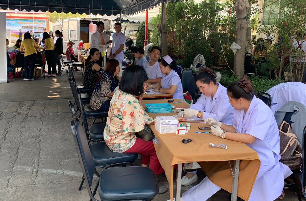 นพ.โสภณ เมฆธน ประธานจัดโครงการแพทย์อาสา ปธพ.8 กล่าวว่า ในวันนี้มีผู้เข้าร่วมโครงการ คือ พระสงฆ์ และสามเณร 200 รูป เจ้าหน้าที่วัด 50 คน โดยมีคลินิกเฉพาะทางดังนี้ คลินิกคัดกรองสุขภาพ และฉีดวัคซีน คลินิกตรวจสุขภาพและโรคทั่วไป คลินิกหู คอ จมูก คลินิกศัลยกรรมกระดูก คลินิกกระดูกและข้อ คลินิกทันตกรรม คลินิกโรคหัวใจตรวจคลื่นไฟฟ้าหัวใจ (EKG) คลินิกจักษุ คลินิกสุขภาพจิต คลินิกโภชนาการ คลินิก X-Ray และการฝึกอบรมการช่วยฟื้นคืนชีพขั้นพื้นฐาน (CPR) คลินิกพิเศษการทำหมันและให้บริการฉีควัคซีนสุนัขและแมว พร้อมทั้งถวายเครื่องกระตุกหัวใจไฟฟ้าชนิดอัตโนมัติ (AED) ไว้ประจำวัดบำเพ็ญเหนือ 1 เครื่องเพื่อได้ใช้ประโยชน์ต่อไป
