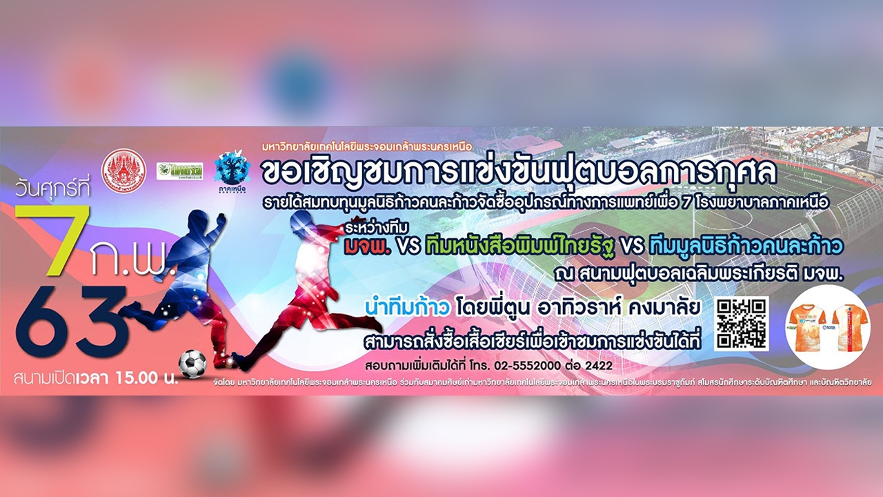 สายวันที่ 12 ม.ค. ศ.ดร.สุชาติ เซี่ยงฉิน อธิการบดีมหาวิทยาลัยเทคโนโลยีพระจอมเกล้าพระนครเหนือ (มจพ.) เผยถึงโครงการพระจอมเกล้าพระนครเหนือ 60 ปี ฟุตบอลสามัคคี ระหว่างทีมมหาวิทยาลัยเทคโนโลยีพระจอมเกล้าพระนครเหนือ ทีม นสพ.ไทยรัฐและทีมมูลนิธิก้าวคนละก้าว นำโดย “ตูน บอดี้สแลม-อาทิวราห์ คงมาลัย” ในวันศุกร์ที่ 7 กุมภาพันธ์ 2563 ตั้งแต่เวลา 15.00 น.เป็นต้นไป ณ สนามฟุตบอล มจพ. ทั้งนี้ เป็นความร่วมมือระหว่างมหาวิทยาลัยฯร่วมกับสโมสรนักศึกษาระดับบัณฑิตศึกษา บัณฑิตวิทยาลัย และสมาคมศิษย์เก่ามหาวิทยาลัยเทคโนโลยีพระจอมเกล้าพระนครเหนือในพระบรมราชูปถัมภ์