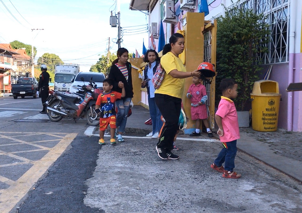 ครอบครัวจันทร์บัวรี ทุกเช้า คุณแม่สุดาวอน จะเป็นคนขับรถมอเตอร์ไซค์มาส่ง น้องไข่มุก ณ ศูนย์พัฒนาเด็กเล็กแห่งนี้ เธอบอกว่า ทุกครั้งก่อนขี่รถออกจากบ้านจะสวมหมวกนิรภัยให้ตัวเองและลูกสาวทุกครั้ง เพราะมองว่าอุบัติเหตุเกิดขึ้นได้ทุกเวลา ซึ่งหมวกกันน็อกถือเป็นอุปกรณ์นิรภัย ที่สามารถลดการบาดเจ็บได้ หลายครั้งที่เห็นคนขี่มอเตอร์ไซค์ประสบอุบัติเหตุ แต่ไม่ใส่หมวกกันน็อก ส่วนใหญ่บาดเจ็บรุนแรงหรือเสียชีวิต จึงรู้สึกกลัว ประกอบกับโรงเรียนมีการสอนและปลูกฝังในเรื่องนี้ ครอบครัวเราจึงให้ความสำคัญในเรื่องนี้เป็นอย่างมาก