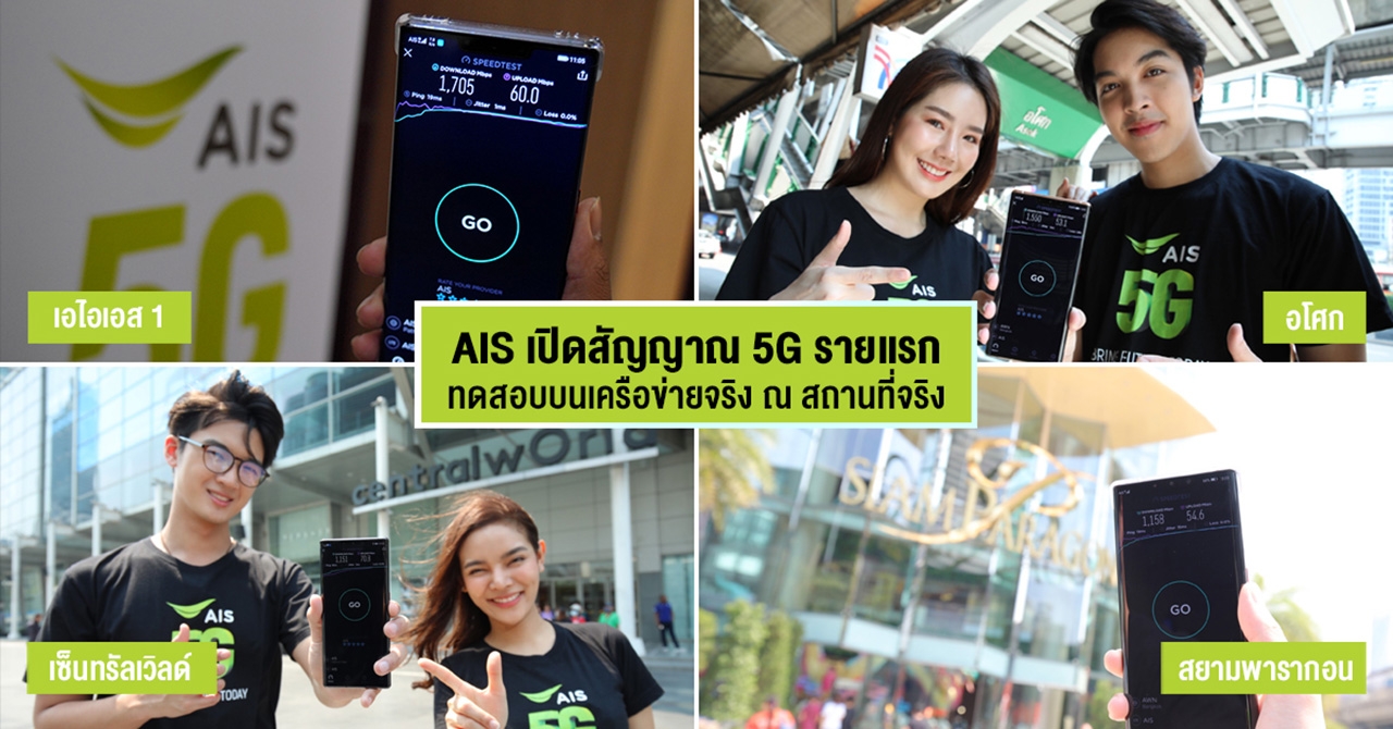 แน่นอนว่าผู้บริโภคเองก็จะค่อยๆ เห็นประโยชน์นี้มากขึ้นเรื่อยๆ ด้วยเช่นกัน แต่ก่อนวันนั้นจะมาถึง วันนี้ เอไอเอส ได้เริ่มเปิดสัญญาณ 5G เป็นรายแรก เพื่อทดลองทดสอบ 5G บนคลื่นความถี่ 2600 MHz บนเครือข่ายจริง ณ สถานที่จริง อาทิ สยามพารากอน เซ็นทรัลเวิลด์ แยกอโศก รวมถึงเขตภูมิภาคทั่วประเทศ