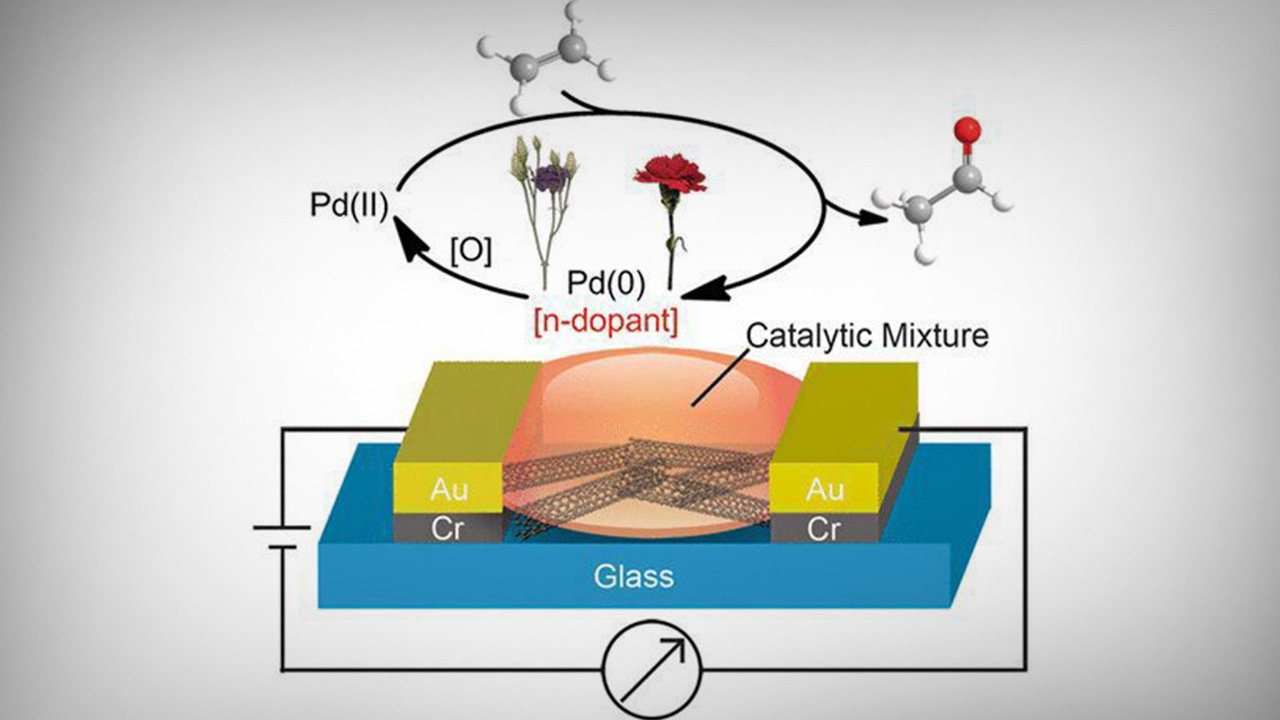 ด้วยแนวคิดติดตามการปล่อยเอธิลีนแบบเรียลไทม์หรือตามเวลาจริง เพื่อให้ข้อมูลที่สำคัญแก่เกษตรกรเพื่อพัฒนาดูแลสุขภาพพืช ล่าสุด นักวิจัยจากสถาบันเทคโนโลยีแมสซาชูเสตต์หรือเอ็มไอที ในสหรัฐอเมริกา เผยว่า ได้พัฒนาตัวเซ็นเซอร์ ใหม่ ประกอบด้วยเครือข่ายผนังท่อนาโนคาร์บอนที่มีเพียงชั้นเดียว (SWCNTs) บนแผ่นกระจกที่คั่นขั้วไฟฟ้าทองคำ นักวิจัยวางตัวเร่งปฏิกิริยาผสมที่มีธาตุแพลเลเดียมไว้ด้านบนของ SWCNTs ตัวเร่งปฏิกิริยาแพลเลเดียมจะเปลี่ยนก๊าซเอธิลีนเป็นแอซีทาลดีไฮด์ (acetaldehyde) และแร่แพลเลเดียมก็เปลี่ยนการทำปฏิกิริยาออกซิเดชันและโต้ตอบกับ SWCNTs ซึ่งการเปลี่ยนแปลงนี้ได้สื่อกระแสไฟฟ้า