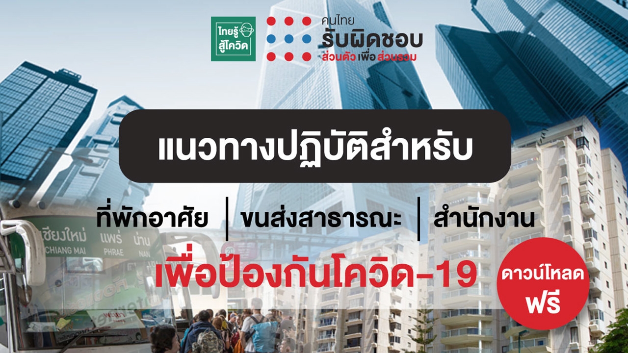 1.อาคารที่พักอาศัย คอนโด อพาร์ตเมนต์ หรือหอพัก โดยทั่วไปผู้พักอาศัยมักมีที่มาที่ไปหลากหลาย ต่างคนต่างอยู่ ข้างห้องกันอาจไม่เคยคุยกันด้วยซ้ำ หากมีใครเจ็บป่วยย่อมเป็นเรื่องยากที่จะดูแลอย่างทั่วถึง ดังนั้นข้อปฏิบัติชัดเจนที่เจ้าของสถานที่ต้องดำเนินการ และสิ่งที่ต้องขอความร่วมมือของผู้พักอาศัยจึงเป็นหัวใจสำคัญในการรับมือโควิด-19 ซึ่งสามารถดาวน์โหลดรายละเอียดได้ ที่นี่ https://bit.ly/2WSvQ72