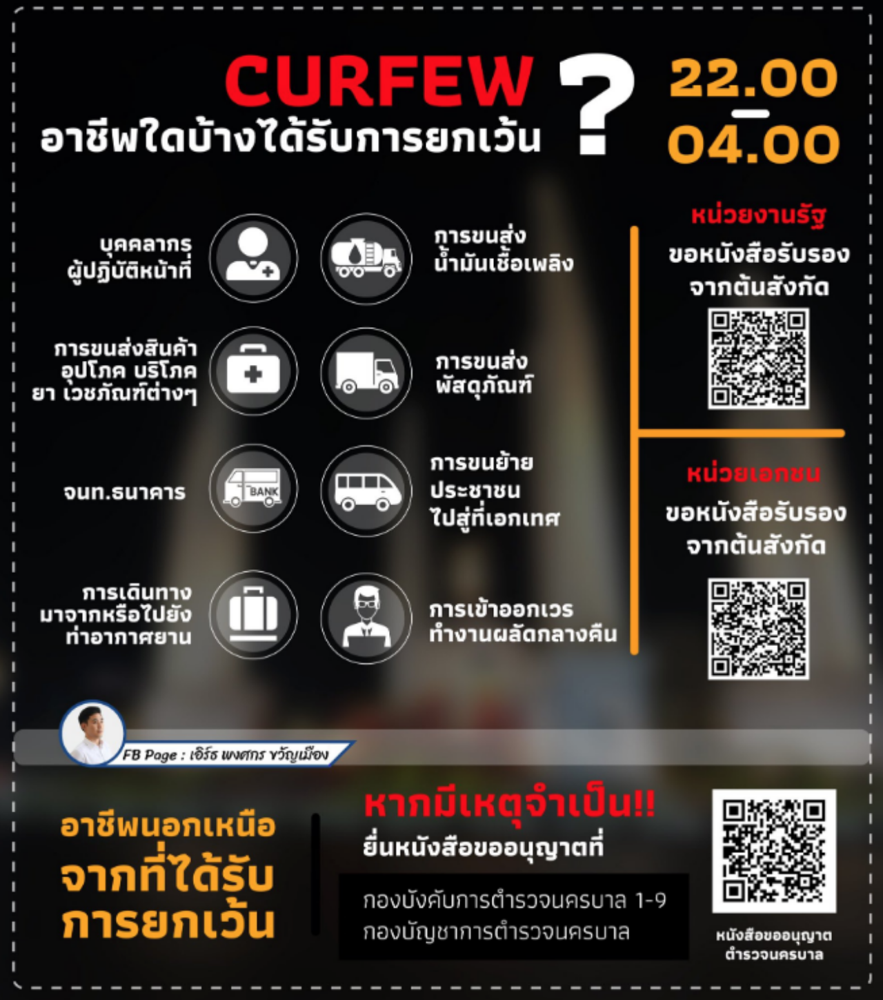 ซึ่งอาชีพที่ได้รับการยกเว้นช่วงเคอร์ฟิว ได้แก่