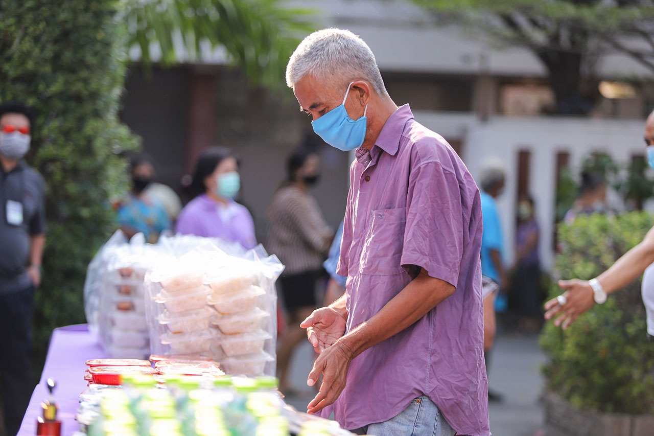 โดยได้ร่วมถวายเครื่องอุปโภคบริโภคไปยังวัดต่างๆ ได้แก่ วัดอรุณราชวรารามวรมหาวิหาร วัดนาคปรก วัดระฆังโฆสิตารามวรมหาวิหาร วัดธาตุทอง วัดโตนด และวัดในภูมิภาคต่างๆ ทั่วประเทศ เพื่อให้เป็นศูนย์ช่วยเหลือผู้ที่ได้รับผลกระทบจากการแพร่ระบาดของไวรัสโควิด-19 ซึ่งทางวัดจะนำไปเป็นวัตถุดิบสำหรับประกอบอาหาร เพื่อช่วยบรรเทาความเดือดร้อนเบื้องต้นแก่พระสงฆ์ สามเณร รวมถึงประชาชนที่เดือดร้อนในการดำรงชีพอีกด้วย