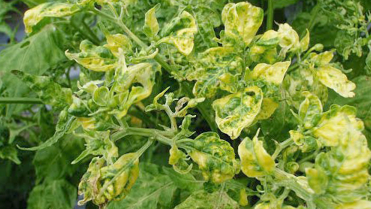 โรคใบหงิกเหลือง ใบยอดและใบอ่อนจะหดย่นหงิกสีเหลือง ขอบใบม้วนงอ ยอดเป็นพุ่ม ใบแตกใหม่เล็ก ต้นแคระแกร็น ไม่ติดผล...โรคใบด่างเรียวเล็ก จะมีใบด่างสีเขียวเข้มสลับสีเขียวอ่อน ม้วนงอ ใบเรียวเล็กกว่าปกติ หากรุนแรงมากใบจะเรียวเล็กเหลือแต่เส้นกลางใบ ต้นชะงักการเจริญเติบโต ไม่ติดผล หรือมีผลเล็ก