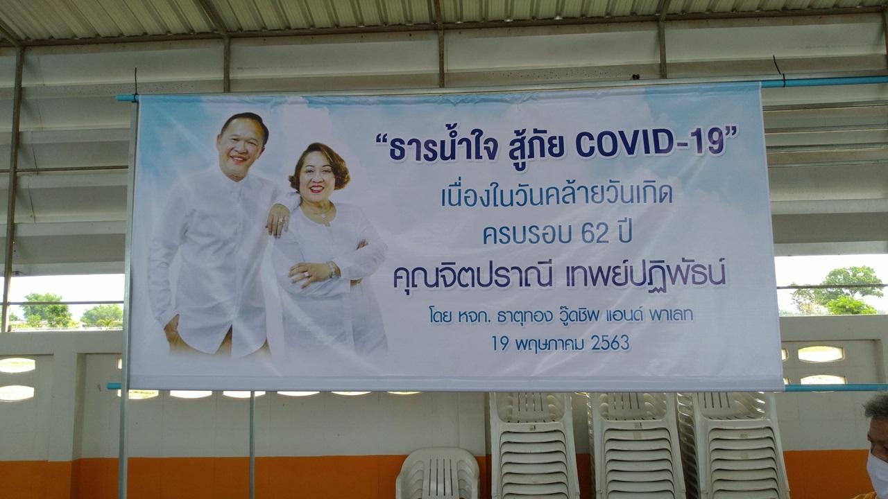 นายอภิรักษ์ เทพย์ปฎิพัธน์ อายุ 64 ปี สามีของเจ้าของวันเกิด กล่าวว่า วันนี้เป็นวันคล้ายวันเกิดครบ 62 ปีของภรรยาของตนเอง จึงมีแนวคิดอยากทำบุญช่วยเหลือชาวบ้านในพื้นที่ที่เดือดร้อนที่ได้รับผลกระทบช่วงวิกฤติโควิด-19 ตนและภรรยาเห็นว่าชาวบ้านส่วนมากหลายครอบครัวลูกหลานไปทำงานใน กทม. ปล่อยเด็กๆ ให้อยู่กับตายาย ต้องตกงาน แถมยังกลับบ้านไม่ได้ แถมไม่มีเงินส่งกลับมาให้ทางบ้านนานกว่า 2 เดือนแล้ว ซึ่งตนเองและภรรยานั้นเคยผ่านความยากจนมาก่อน และเมื่อพอมีอยู่มีกินก็อยากแบ่งปันให้กับชาวบ้านบ้าง โดยไม่คิดและหวังผลตอบแทนใดๆ