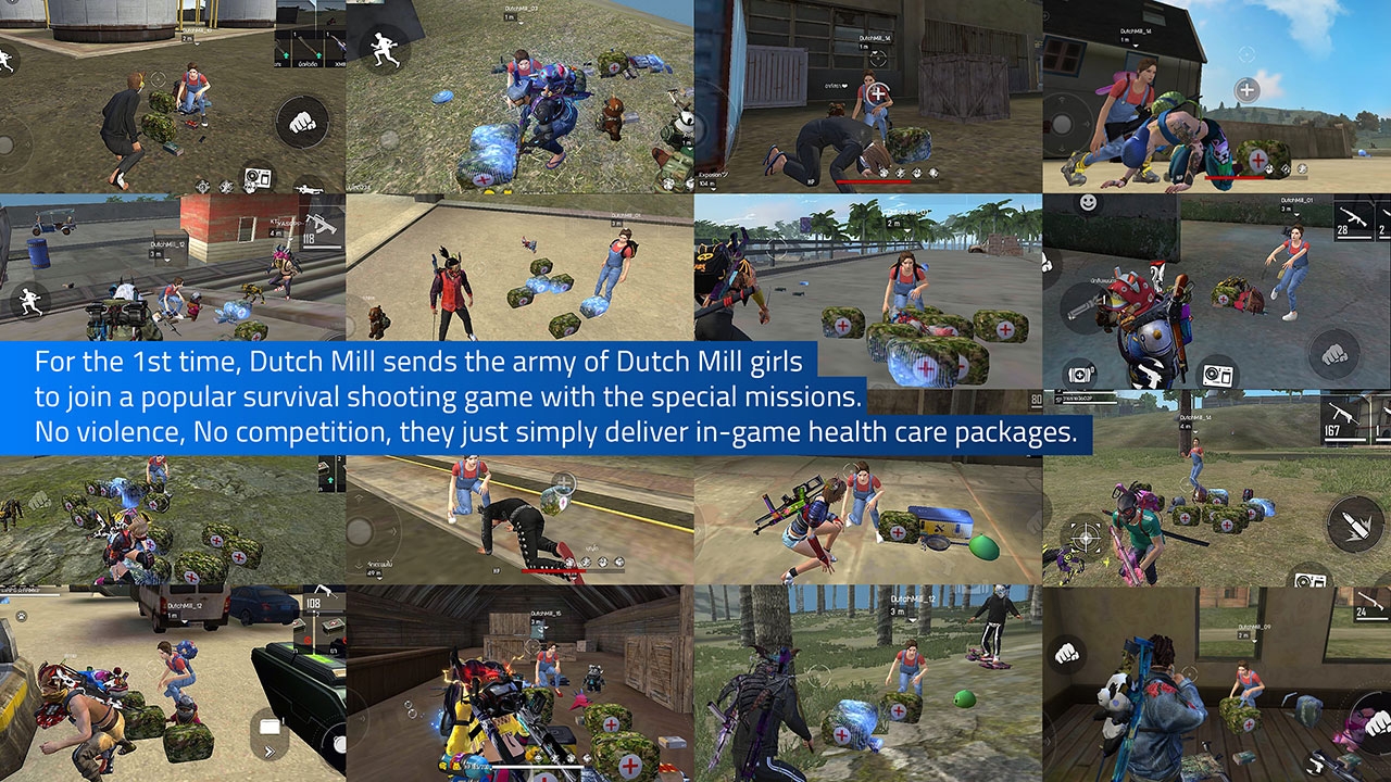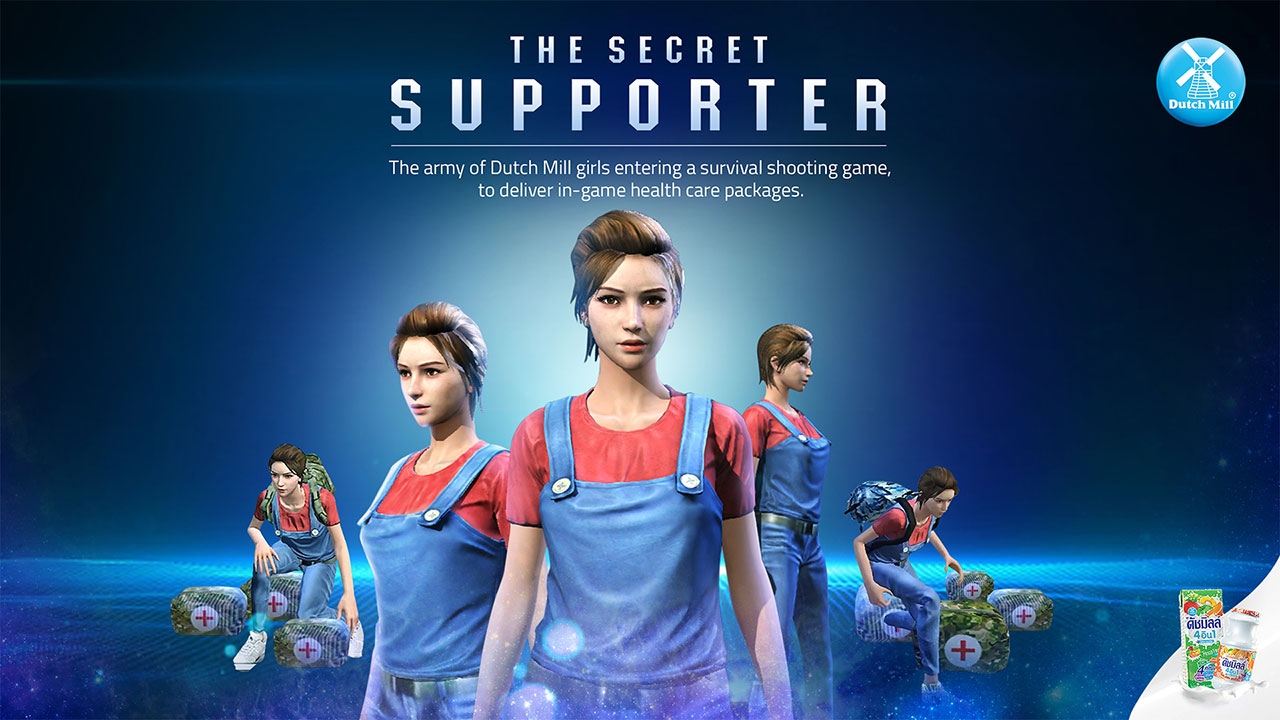 ด้วยการนำเอาคุณประโยชน์จากโยเกิร์ตพร้อมดื่ม Dutch Mill 4in1 ที่มีประโยชน์ ให้พลังพร้อมความอร่อยสดชื่นกับชีวิตวัยรุ่นไทย มานำเสนอในรูปแบบ In-Game Real Time Experience ด้วยการส่ง “สาวดัชมิลล์” ตัวแทนคนส่งประโยชน์เข้าไปในเกม Survival Shooter อันดับต้นๆ ของประเทศ ด้วยหน้าที่สุดแปลกใหม่ไม่เคยมีมาก่อน โดยเราเข้าไปเติมประโยชน์และพลังให้กับผู้เล่นในเกม ไม่สร้างความรุนแรงและการแข่งขันใดๆ คอยซัพพอร์ตผู้เล่นเพียงอย่างเดียวเท่านั้น