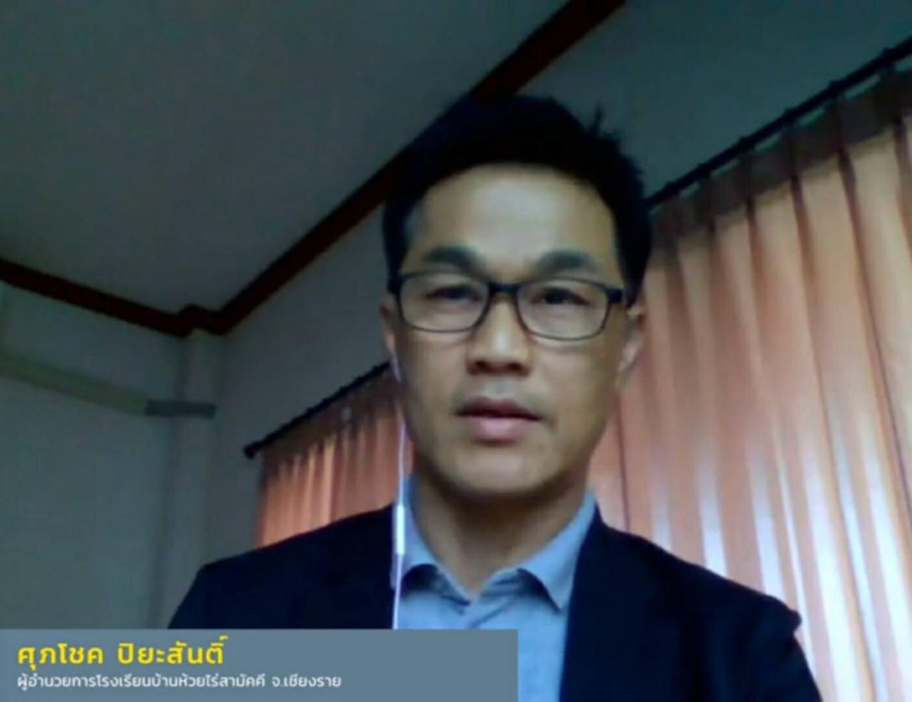 นายศุภโชค ปิยะสันติ์ ผู้อำนวยการโรงเรียนบ้านห้วยไร่สามัคคี จ.เชียงราย กล่าวว่า ความพร้อมของโรงเรียนประสบปัญหาหลายแห่ง เด็กออนไลน์ได้แค่บางส่วน ออนแอร์ได้บางส่วน บางส่วนต้องออฟไลน์ สิ่งที่โรงเรียนเผชิญสัปดาห์ที่ผ่านมา คือ การต้องพูดคุยเพื่อให้เกิดการเรียนรู้เกิดประสิทธิภาพที่ดีที่สุด ทำอย่างไรให้ขับเคลื่อนนโยบายกับปฏิบัติจริงให้ได้การเรียนรู้ดีที่สุด ซึ่งมีทั้ง กลุ่ม ม.ปลาย ที่ส่วนใหญ่เรียนออนไลน์ได้ อีกกลุ่มเข้าไม่ถึงออนไลน์ก็ต้องเกาะกับเนื้อหา DLTV อีกด้านยังมีช่องทางการเรียนรู้ที่เรียนจากชุมชน เรียนจากปราชญ์ชาวบ้าน ให้เขาไปหาความรู้ด้วยตัวเอง