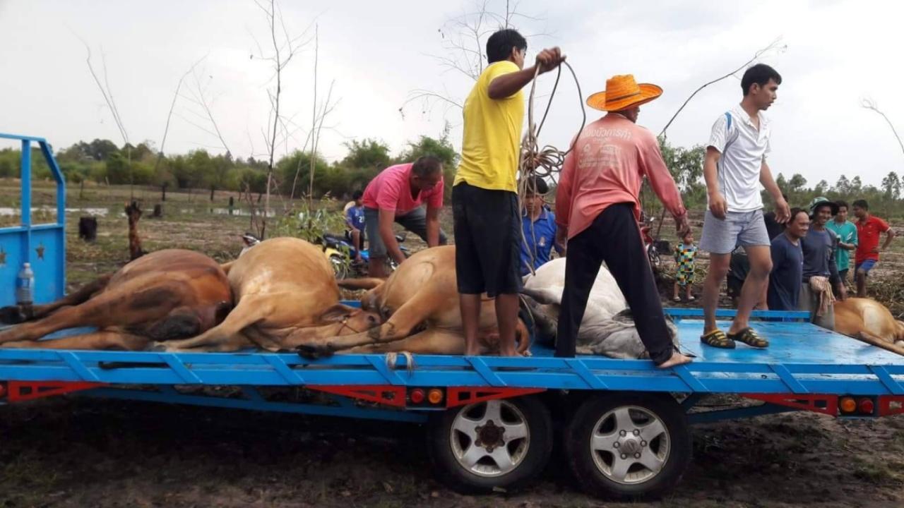 ฝนตกลมแรง คนเลี้ยงพยายามไล่ต้อนวัวกลับบ้าน เกิดฟ้าผ่า วัวล้มตาย 8 ตัว คนเจ็บ 1 ส่วนอีกคนนั่งหลบฝนรอดเหลือเชื่อ