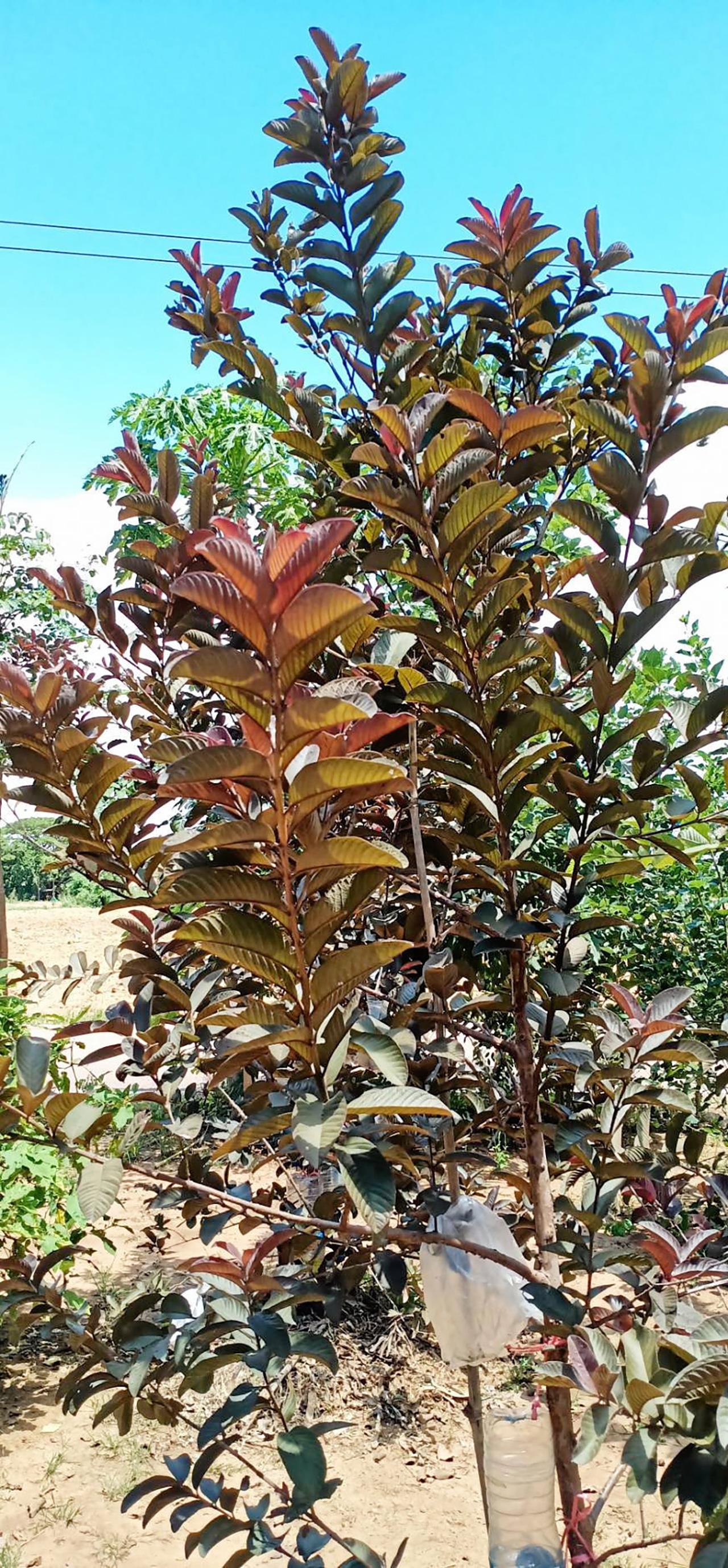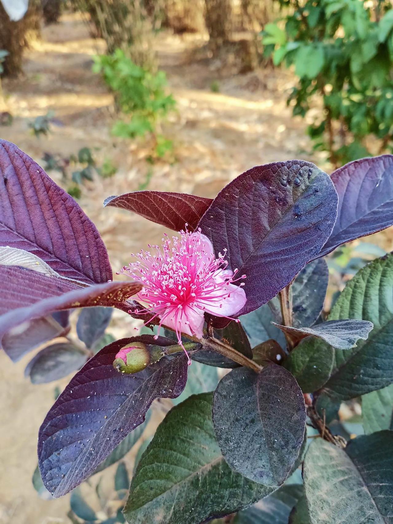 ฝรั่งแดง โดยทั่วไปมักจะแดงแต่ผล เนื้อ หรือไส้...แต่ฝรั่งแดงของไร่อรหันต์ อ.สูงเนิน จ.นครราชสีมา ต่างออกไป ออกสีแดง ม่วง ชมพู ตั้งแต่ต้น กิ่ง ก้าน ใบ ไปยันดอก ผล มีผลสีแดง ตั้งแต่ยังเล็ก ทั้งข้างในข้างนอก ไปจนวันเก็บเกี่ยว ที่สำคัญยังกรอบ หวาน อร่อย