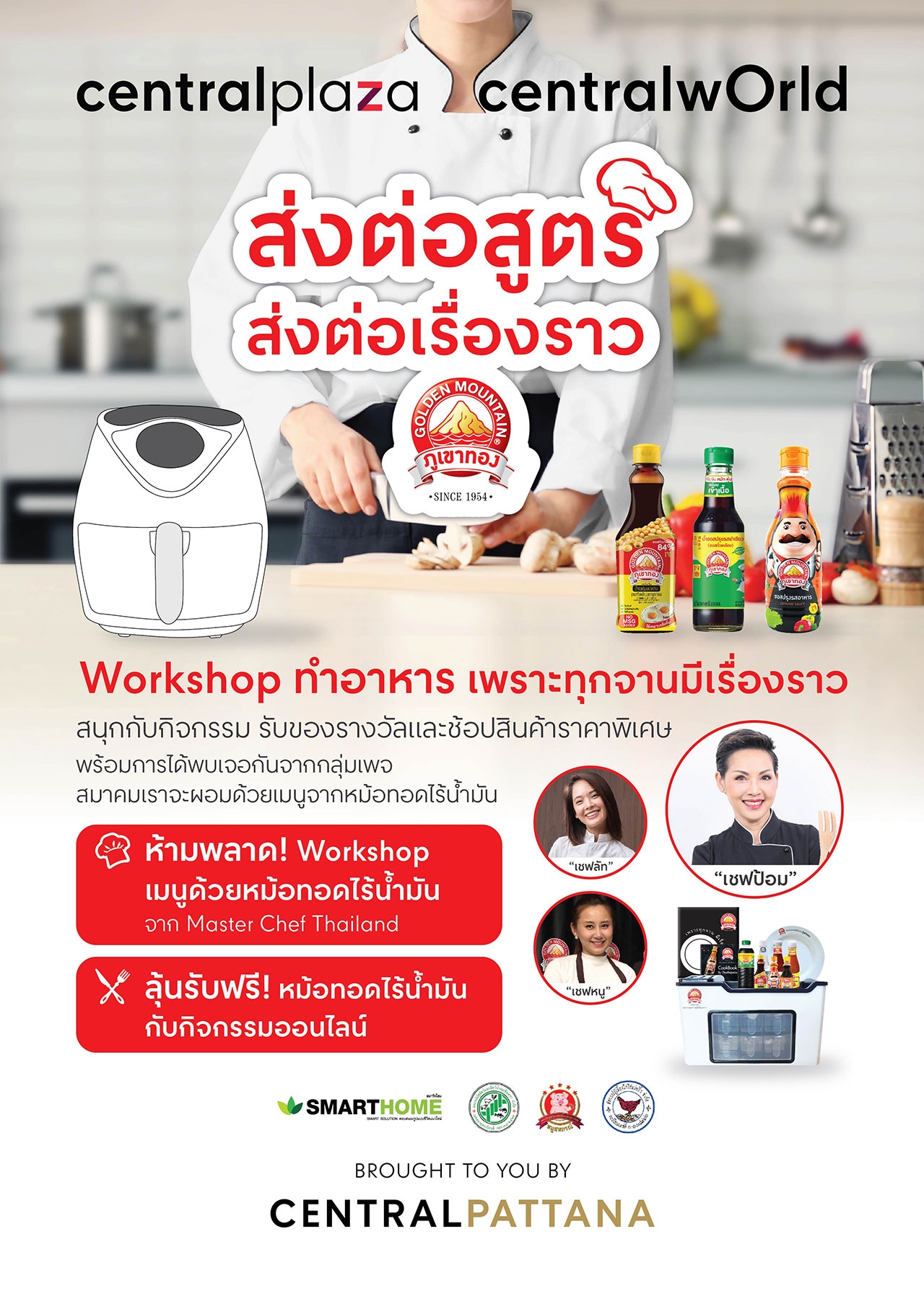 บริษัท เซ็นทรัลพัฒนา จำกัด (มหาชน) ร่วมกับซอสภูเขาทอง โดยบริษัท ไทยเทพรส จำกัด (มหาชน) จัดกิจกรรม "ส่งต่อสูตร ส่งต่อเรื่องราว" เพิ่มรสชาติให้กับทุกเมนูอร่อยที่ทำได้ที่บ้าน ตอบรับไลฟ์สไตล์ยุค Now Normal ที่ผู้คนนิยมทำอาหารทานเอง และต้องการนำกลุ่มคนจากเพจสมาคม เราจะผอมด้วยเมนูจากหม้อทอดไร้น้ำมัน ได้มาพบเจอแลกเปลี่ยนประสบการณ์การทำอาหารร่วมกันในงาน