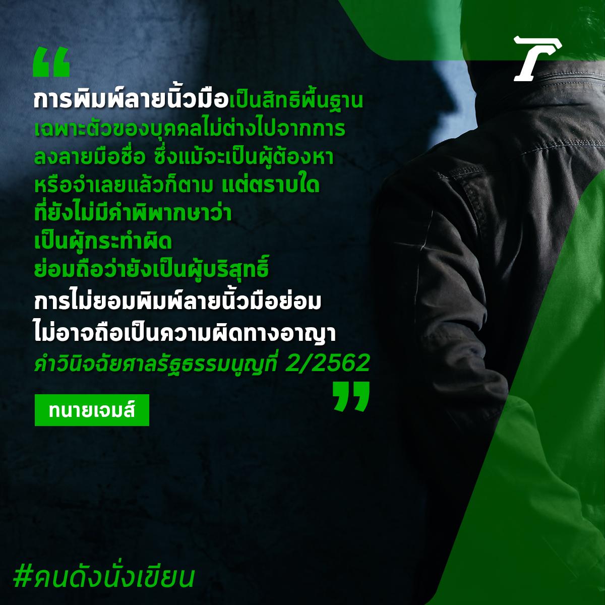 โดยศาลรัฐธรรมนูญมีคำวินิจฉัยว่า การพิมพ์ลายนิ้วมือเป็นสิทธิพื้นฐานเฉพาะตัวของบุคคลไม่ต่างไปจากการลงลายมือชื่อ ซึ่งแม้จะเป็นผู้ต้องหาหรือจำเลยแล้วก็ตาม แต่ตราบใดที่ยังไม่มีคำพิพากษาว่า เป็นผู้กระทำผิดย่อมถือว่ายังเป็นผู้บริสุทธิ์ การไม่ยอมพิมพ์ลายนิ้วมือย่อมไม่อาจถือเป็นความผิดทางอาญา คำวินิจฉัยศาลรัฐธรรมนูญที่ 2/2562
