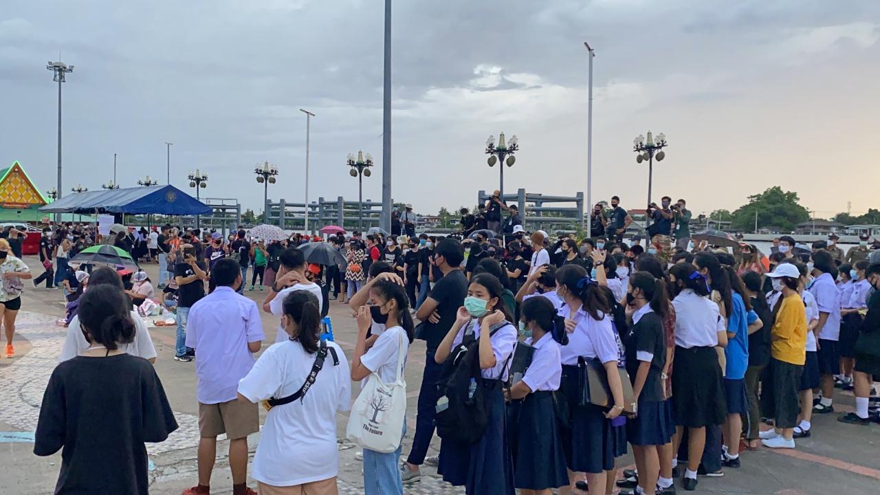 ที่ จ.นนทบุรี บริเวณลานกิจกรรมริมเขื่อนท่าน้ำนนทบุรี ต.สวนใหญ่ อ.เมือง นายชินวัฒน์ จันทร์กระจ่าง แกนนำจัดกิจกรรม "เด็กนนท์ พร้อมชนเผด็จการ แฮมเตอร์นนท์ ไล่รัฐบาล ลูกทุเรียนนนท์ ต่อต้านเผด็จการ ยุบสภา ร่างรัฐธรรมนูญโดยประชาชน ยกเลิก พ.ร.ก.ฉุกเฉิน" โดยมีนักเรียน นักศึกษา และประชาชนเข้าร่วมกิจกรรมกันอย่างคึกคัก ท่ามกลางสายฝนที่ตกลงมา โดยมีเจ้าหน้าที่ตำรวจทั้งในและนอกเครื่องแบบ เฝ้าสังเกตุการณ์ เพื่อดูแลความปลอดภัยเรียบร้อย นอกจากนี้ยังมีเจ้าหน้าที่สาธารณสุข มาตั้งจุดคัดกรองตรวจโควิดฯให้กับกลุ่มผู้ชุมนุมด้วย