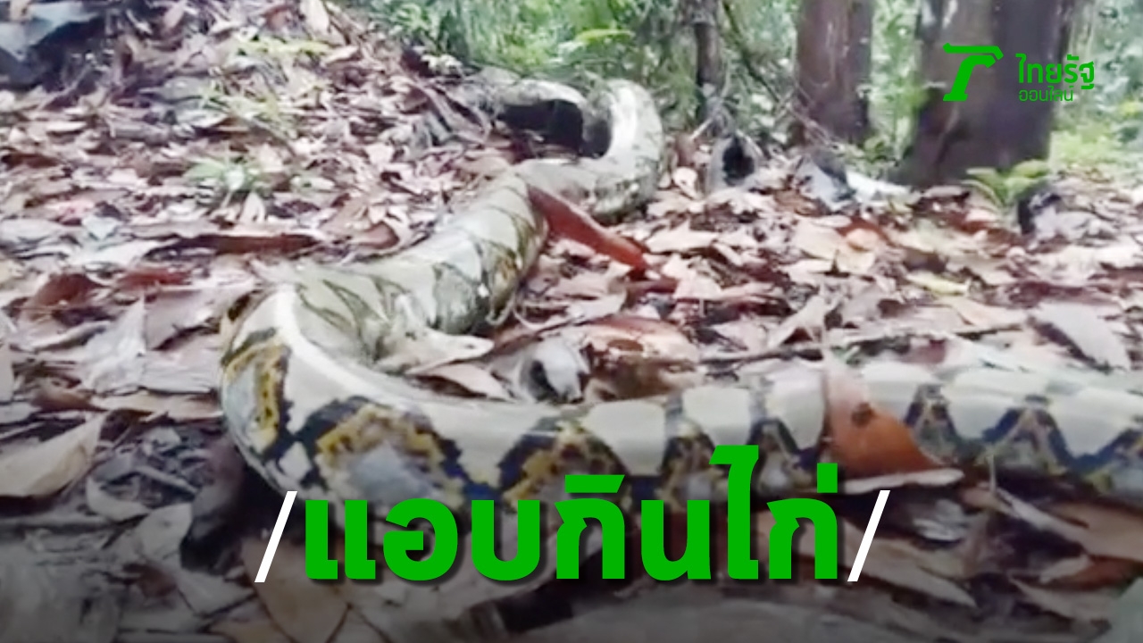 กู้ภัยไล่จับงูเหลือมยักษ์ ยาว 5 เมตร แอบขโมยไก่ชาวบ้าน เลื้อยขึ้นไปเขมือบบนต้นไม้ เจ้าหน้าที่วุ่นต้องตามจับนานกว่า 2 ชั่วโมง