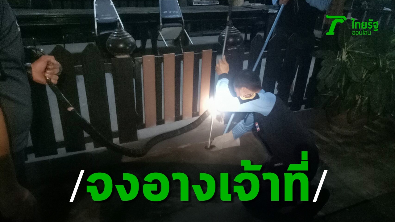 งูจงอางยาวเกือบ 4 เมตร เลื้อยเข้าอาคารสำนักงานเทศบาลตำบลเวียงเทิง จ.เชียงราย ใช้เวลาในการจับนานเกือบครึ่งชั่วโมง เชื่อเป็นงูเจ้าที่ ก่อนจับไปปล่อยป่า